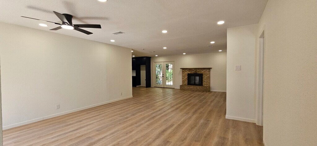 Completely updated 3-bedroom, 2-bath home in beautiful Hurst!! Located within the sought-after HEB ISD, this home sits in a safe and tranquil neighborhood with updates throughout. Enter the home into a LARGE open floor plan showcasing a gas fireplace that transitions into a spacious kitchen. The kitchen boasts new stainless-steel appliances with new cabinets, countertops, and classic backsplash. Luxury vinyl plank flooring throughout that makes cleaning a breeze and reduces allergens. The master bedroom with its updated ensuite bath offers style and comfort after those long days of work and play. You have a convenient laundry closet in the hallway as well as ample storage closet for your linens and such. The home is equipped with a 2 car garage and a large shed in the backyard. Enjoy relaxing evenings on the concrete deck or take advantage of nearby parks, shopping, and dining options within minutes of your doorstep. This home is perfect for anyone seeking a beautifully updated residence in the desirable HEB area.