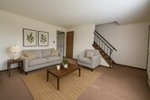 Highland Townhomes provides a comfortable living space, ideally situated between the area's primary retail shopping centers and the downtown district. Inside, enjoy the functionality of a two-level layout with reserved parking directly at the front door. Units are equipped with in-unit laundry hookups, allowing for added convenience.