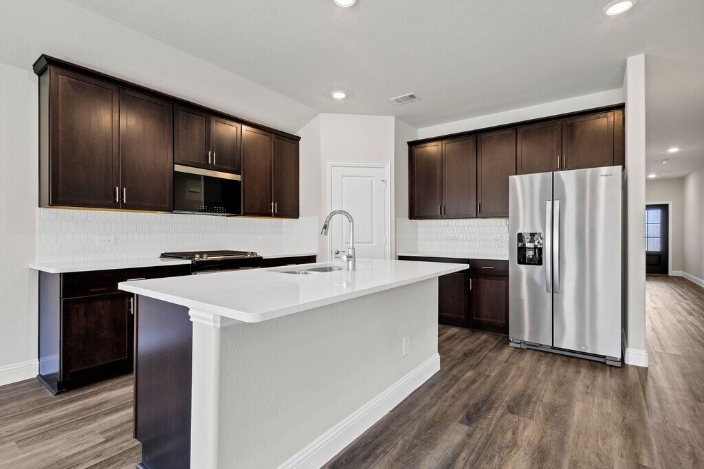 Single Story Floor plan features 4 bedroms, 3 full baths, with a two car garage. Open large living and dining area, plenty of space! New finishes and fixtures throughout on corner lot. Perfect for all types of families. Home comes complete with all appliances, washer, dryer, fridge, and a gas range, with upgraded faucets and upgraded microwave. Ready to go this June 1. Great price in a great area. Community pool, parks jogging and bike paths Large open green spaces throughout the community for exercise, play or relaxation. Request a tour today!