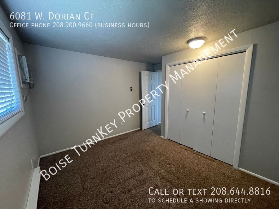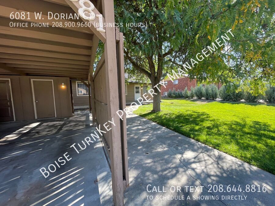 Discover comfort and convenience in this charming 2-bedroom duplex located on Boise’s desirable Borah Bench. This home offers a spacious layout with bright living areas and plenty of natural light. Enjoy the privacy of your fully fenced yard, perfect for relaxing, gardening, or entertaining. A covered carport adds extra convenience, providing protection from the elements year-round. Located in a quiet residential neighborhood just minutes from shopping, dining, and downtown Boise, this home combines peaceful living with easy access to everything you need. Email or text our agents' local numbers or email for fastest reply! Note: We do not advertise on Craigslist, and all agents have an email specifically tied to our company. All showings are self-guided- video tour also offered if preferred! Nitty-gritty details: Home available now, lease term 6-18 months, flexible. Washer/dryer hookups Tenant pays electric, gas, water only- management will cover sewer/trash. Non-smoking unit ONLY. Security deposit of $1600 due 48 hours after application approval ($1200 refundable, $400 held for admin fee, cleaning and rekeying). Wall heater and AC Lawn and yard maintenance provided Resident Benefits Package includes on demand pest control, filter delivery program, credit reporting, and more- included in your rent! All adult tenants on lease must be screened and pass requirements, roommates must each qualify independently. Pets will be considered with current screening profiles, passing score, and additional pet fee. Tenant will be required to secure renter's insurance policy. We cannot "hold" property. Must be prepared to initiate a lease and begin paying rent within 10 days of application approval. Verify the ad on our company website (WE DO NOT ADVERTISE ON CRAIGSLIST) and request an in-person showing with a qualified agent today! Sewer/Trash/Water