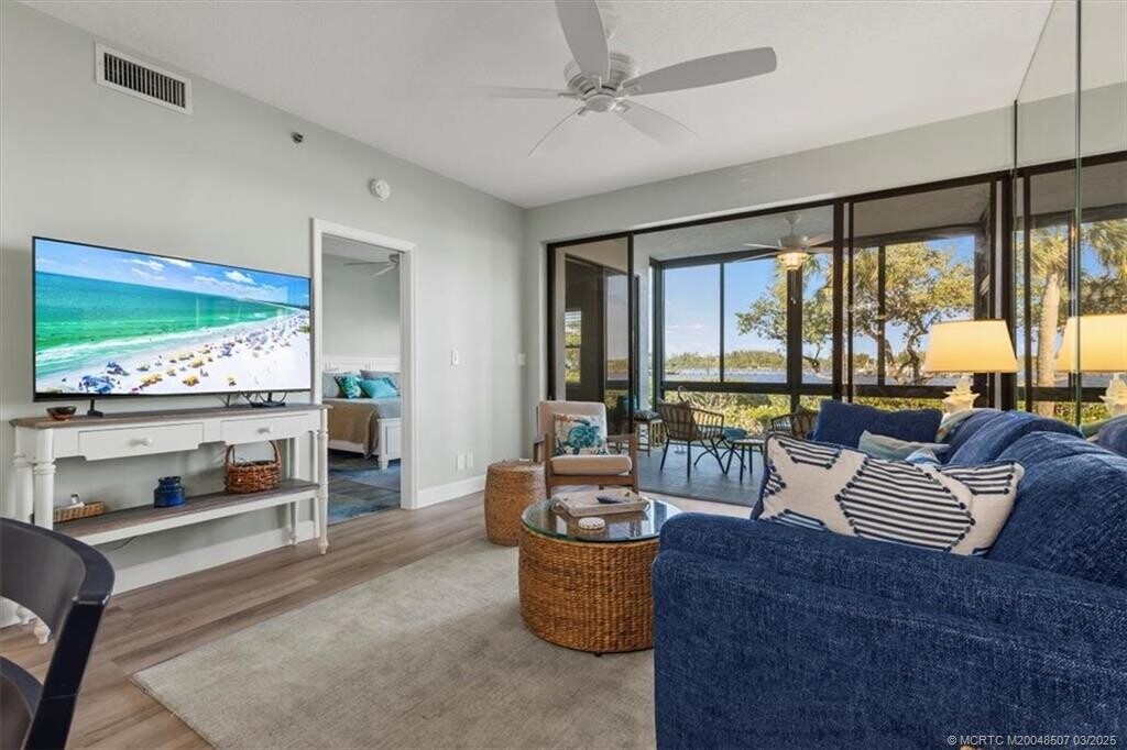 If your dre?m i? t? hav? a stunning,l?w m??ntenance,fully renov?ted,b?autifully furnished,quiet & comfortable rental w/ breathtaking DIRECT INTRACOASTAL views,look no further! You will fall in love with this exquisite condo which has awesome water views from nearly every room. In addition,the screened Lanai is a perfect place for relaxing. Located in the lovely Hanson's Landing Community,this tastefully updated condo features a fully renovated kitchen,w/ SS appliances,luxury vinyl plank flooring throughout,new sinks,plumbing,fans,& lighting. The condo is fully furnished w/ beautiful decor that will make you feel right at home. Home also includes an in unit full laundry. Community Amenities include tennis & pickleball courts,pool & clubhouse,& kayak storage. Adjacent to Cove Park beach,& kayak launch area on the Intracoastal. Available for seasonal or annual rental,this all-age community is perfect for anyone looking to enjoy waterfront living w/ great amenities. MLS# M20048507