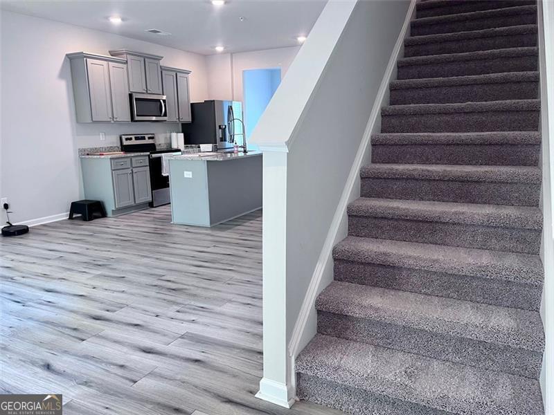 Welcome to 6087 Mallory Ridge - an immaculate, like-new 3-bedroom and 2.5 bath rental townhome offering modern comfort, style, and functionality. Built in 2023, this pristine property has been meticulously maintained and is truly move-in ready. Step inside to an open and airy floor plan filled with natural light and upscale finishes, including gleaming hardwood floors throughout the main level. At the front of the home, a versatile flex room awaits-perfect for a home office, creative studio, formal dining room, or whatever fits your lifestyle. The heart of the home is the stunning chef's kitchen, featuring granite countertops, sleek gray cabinetry, and a generous center island with an undermount sink - ideal for meal prep or entertaining. The kitchen flows effortlessly into a spacious family room with a cozy fireplace, creating a welcoming space to relax or gather with loved ones. Upstairs, the expansive owner's suite offers a peaceful retreat with ample space and privacy. The spa-inspired en-suite bath features a large walk-in shower, dual granite-topped vanities, and plenty of storage. Two additional bedrooms and a stylish hall bath with granite countertops complete the upper level. Enjoy a private backyard-great for quiet mornings or weekend barbecues-and take advantage of the home's unbeatable South Fulton location, with easy access to major highways, shopping, dining, and Hartsfield-Jackson Airport. If you're searching for a rental that combines modern design, convenience, and spotless condition, look no further.