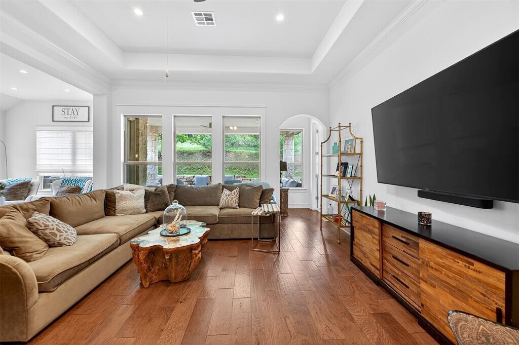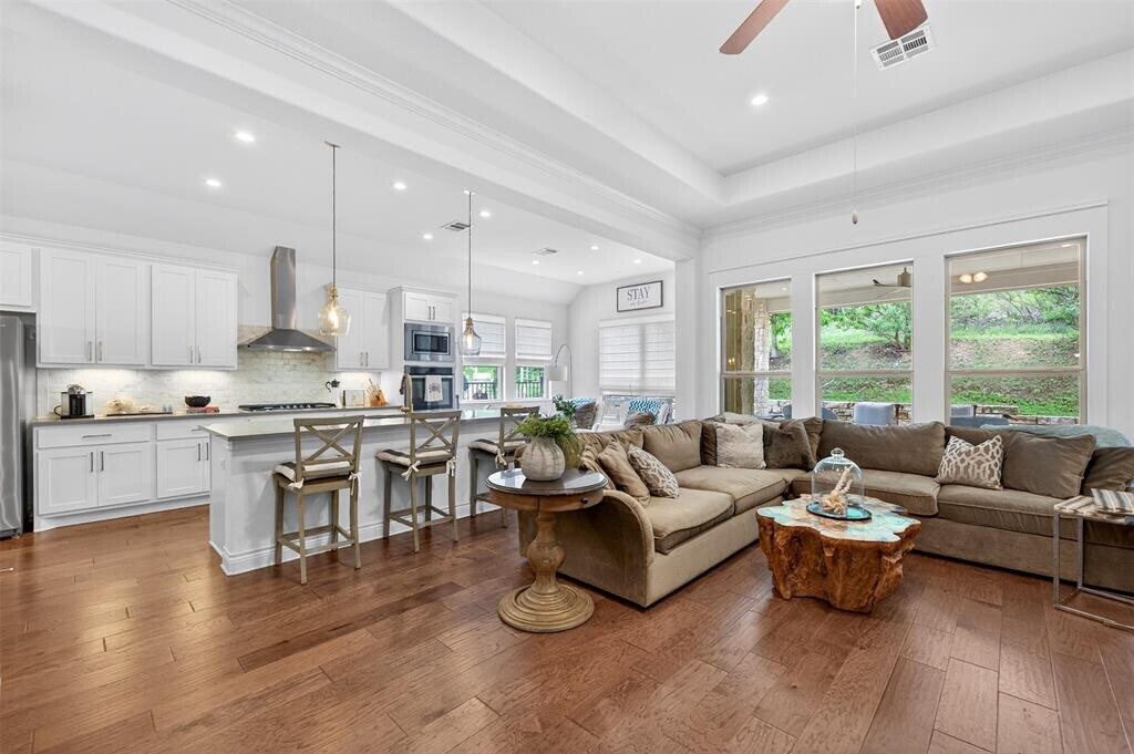 Welcome to 609 Anfield Circle, a beautifully maintained single-story home in Rough Hollow. Offering a rare and highly sought-after 3-car garage, this 4 bedroom, 3 full bath home combines convenience, space and comfort. Featuring an open-concept floor plan filled with natural light, creating an inviting atmosphere perfect for both everyday living and entertaining. The well-appointed kitchen features a double oven, ample cabinetry and generous counter space, seamlessly flowing into the living and dining areas. The private primary suite serves as a relaxing retreat with a well-designed en-suite bath and two walk-in closet. Three additional bedrooms and a study provide flexibility for guests and a home office. Step outside to a private backyard with a covered patio backing to green space, ideal for quiet evenings or weekend gatherings. Residents enjoy access to Rough Hollows resort-style amenities, including multiple pools, lazy river, state-of-the-art fitness center, tennis courts, pickleball, basketball courts, playgrounds, splash pad and a yacht club and marina with free kayaking and paddleboarding. Come experience the ultimate Lakeway lifestyle in this beautiful home. **New carpets will be installed. MLS ID 4578640