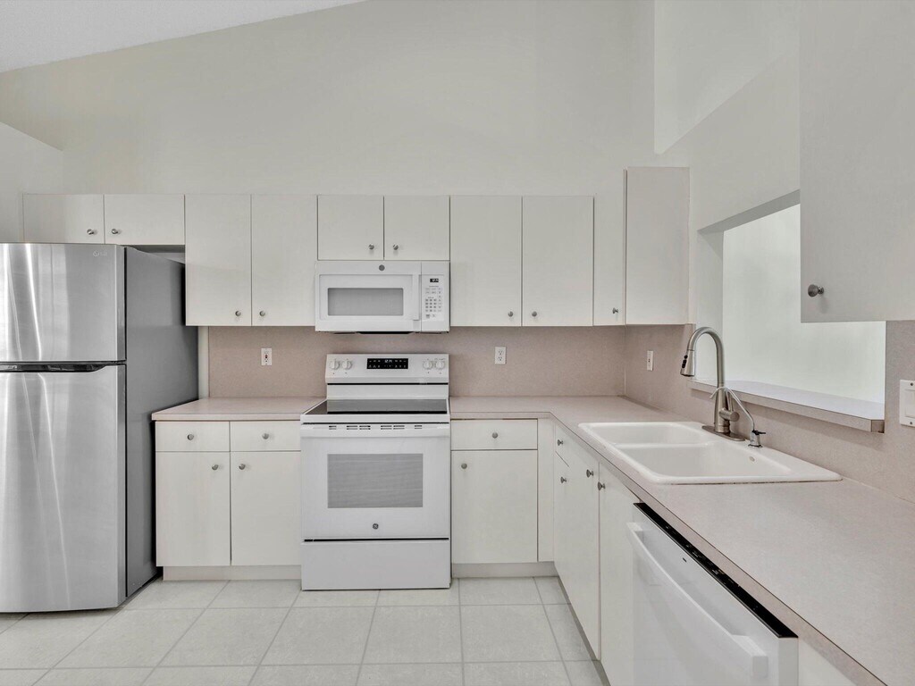 Welcome to your new home in Floral Lakes! Nestled in the heart of tranquility,this freshly painted and spacious two bed,two bath,one-story villa awaits its new resident. With vaulted ceilings adding to its airy charm,this home also boasts a 1-car garage for your convenience. Peace of mind with accordion hurricane protection throughout. A screened back patio is the perfect spot to savor morning coffee. Inside,discover a white,bright eat-in kitchen,with newer appliances offering both functionality and style. Convenience of an interior washer/dryer. Embrace the vibrant community spirit with a plethora of activities to indulge in: pool,hot tub,card clubs,pickleball,tennis,gym,or get creative in the arts & crafts room. Don't miss the opportunity to live & play in Floral Lakes MLS ID R11149539