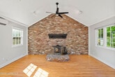 This spacious 4 bedroom,3 full bathroom single-family home offers a flexible layout with two bedrooms & two full bathrooms on the first floor,including a primary suite with its own full bath,and two additional bedrooms plus a full bath upstairs. The eat-in kitchen features stainless steel appliances and opens to a bright dining area with chandelier lighting,while a formal dining room provides space for larger gatherings. A cozy living room/den with a brick accent wall,wood-burning stove,and direct access to the patio creates the perfect place to relax. Sliding glass doors from both the kitchen and den lead to a private backyard with a patio,ideal for entertaining or enjoying quiet evenings at home. Large two car garage.