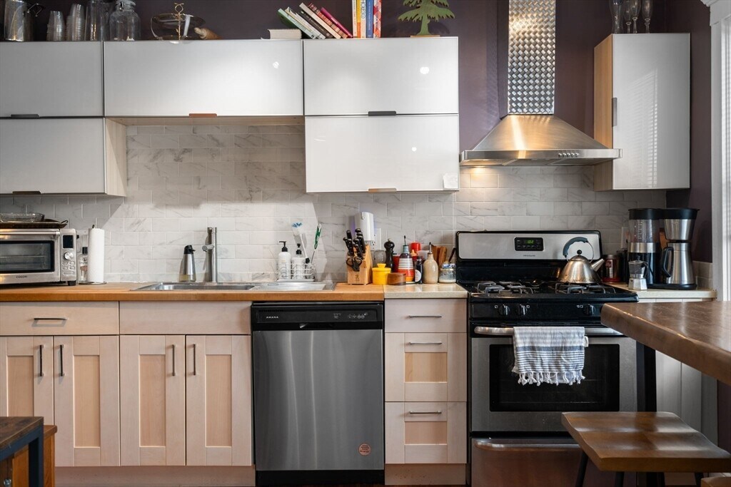 This sun drenched 2-bedroom + den perched atop a charming Roslindale building delivers space and style. The thoughtfully designed layout flows from a modern kitchen into a spacious living room - complete with a tucked-away nook perfectly suited for a home office or reading corner. The oversized primary bedroom opens seamlessly into a large den and private deck (the den has potential to be separated into 3rd bedroom). The main bathroom includes a large soaking tub and separate shower while the half bath provides convenience. A generous second bedroom complete this versatile floor plan. Mini-split systems provide cooling throughout for year-round comfort. Additional highlights include in-building laundry and off-street parking. Located just around the corner from Roslindale Village's boutique shops,celebrated restaurants,and vibrant community energy. Don't miss this opportunity to live in one of Boston's most beloved neighborhoods! MLS# 73483773