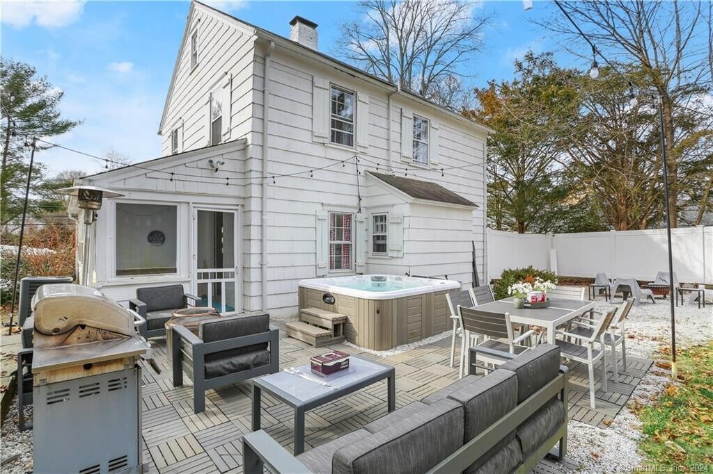 Call for Availability - AVAILABLE from 6/26/26-DALD (9/8/26) with possibility of extending to 9/30/26. Enjoy your summer at this wonderful Greens Farms Colonial. What a perfect spot to come home to, after a day at the beach! Spend your evenings on the screened porch & in the festive, private back yard with a great patio featuring multiple seating areas, fire pit, hot tub (with outdoor smart TV) and swing set. The main level offers a living room complete with a comfortable TV area, a spacious country Eat-in Kitchen plus a Home Office -no need to travel to work from here! 3 sweet Bedrooms upstairs share a bath. The Primary has a king sized bed. One Bedroom has a twin with a trundle bed that opens to a king. The other has two twins and one twin has a trundle. The lower level offers a Home Theater, complete with recliners, plus the laundry. Detached Garage has been converted to an Entertainment/Lounge/Game Room with smart TV, piano and more! Owners reserve walk-up attic for their belongings. Just over an hour by train service from NYC. Enjoy all that Westport has to offer including great dining, Compo Beach, Longshore Country Club, Westport Country Playhouse and concerts under the stars all summer long at the Levitt Pavillion. Owners prefer no pets. MLS# 24150954