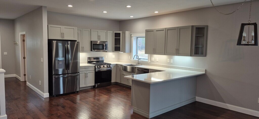 We are proud to present our new luxury living condo style unit at CrossMill Village, 14 Stonehenge Circle, Northfield, NH. It has hard wood flooring, and is very spacious with a lower level walk out. You can enjoy winter with radiant natural gas heat and fireplaces. Our Condo has 2.5 Bathrooms with endless hot water Our Condo features- Granite counter tops, Stainless steel appliances, a vaulted ceiling and space for a game/family room on the lower level. The unit is super quiet and warm as it is are built with ICF construction ( insulated concrete foam) It is close to the Winnipesaukee River trails. Rural, yet close to interstate 93 corridor. Feel free to stop by for a tour. Direction are: Central St Tilton to Crossmill Rd to Millstone Drive, a private road on the right.
