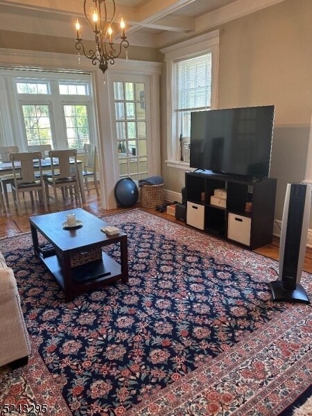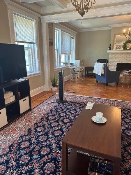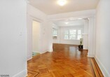 Spacious first floor apartment in pre-war apartment with special architectural details: high ceilings, large windows, beamed ceilings & fireplace. Entry foyer with guest closet, large LR wfpl & formal dining room combo. Adjoining cook's kitchen. Hall leads to laundry room & powder room then primary bedroom, 2nd bedroom & bath. Basement has dedicated storage room plus outside entrance to parking & garage. Perfect location to enjoy all that Montclair has to offer...shops, restaurants, & transportation.