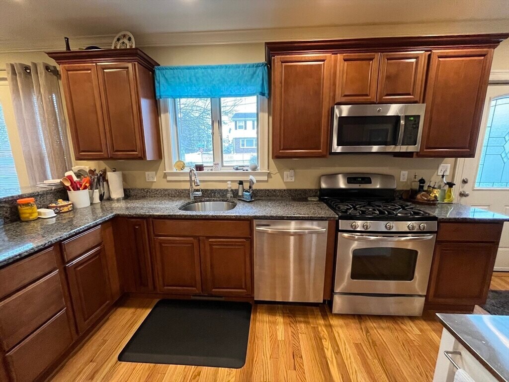 Completely renovated 2+ bedroom townhouse with open layout and great off-street parking. Two large bedrooms plus additional room well-suited for home office or children's room. Stainless steel appliances,granite counter-tops and washer/dryer hookups in unit. Well maintained property with big side yard and good outdoor space. Hardwood floors in kitchen,living and dining areas. Basement has ample space for storage. Unit has been treated for lead paint; owner has Letter of Full Compliance. Video tour available upon request. MLS# 73461574