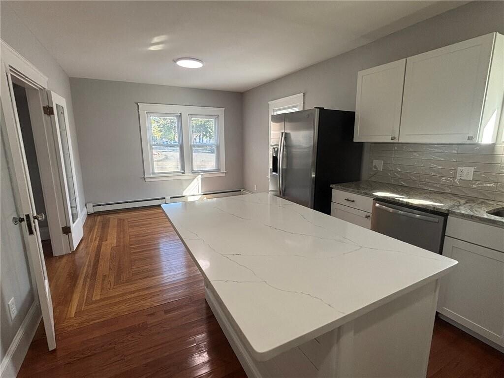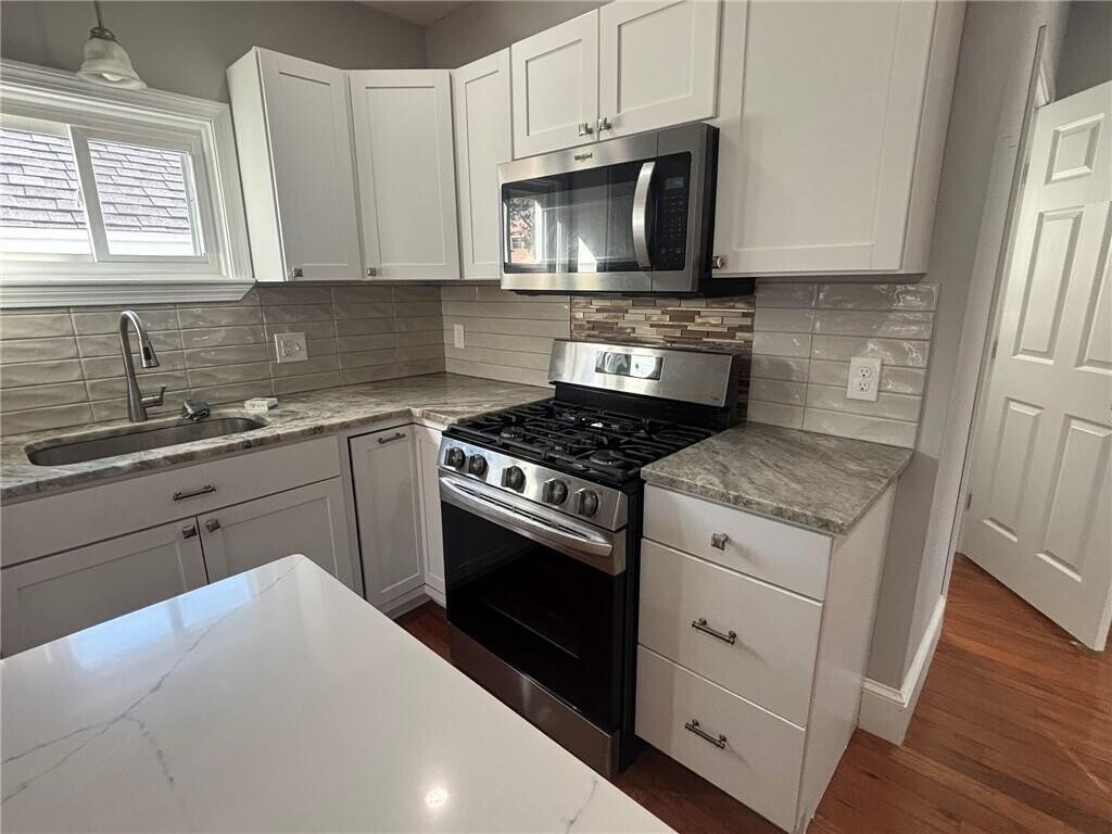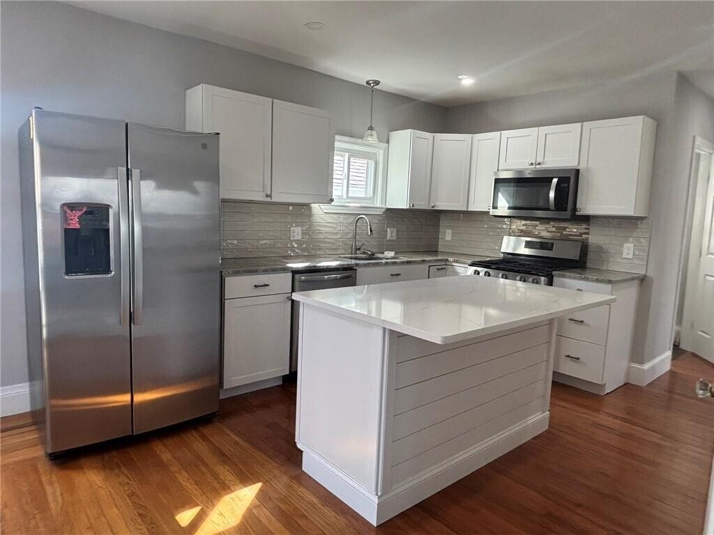 Newly Renovated and Spacious Three Bedroom,Two Full Bathrooms Colonial Single Home in Edgewood available for rent today! Meticulously cared for. New windows on both the first and second floors. Brand new boiler. Brand new roof. Brand new kitchen with 5 feet quartz island. Hardwood floor all through the house. Mini-split AC units on both first and second floor. One car garage on a corner lot. 2 parking spots on different sides of the house. Large basement for storage. Brand new washer dryer in basement. The home is serviced by water,sewer and gas. Low maintenance yard: Large front yard facing Warwick ave,no back yard. Minutes walk from Roger Williams Park and Zoo! Cranston East district. Don't miss out on this exquisite abode!