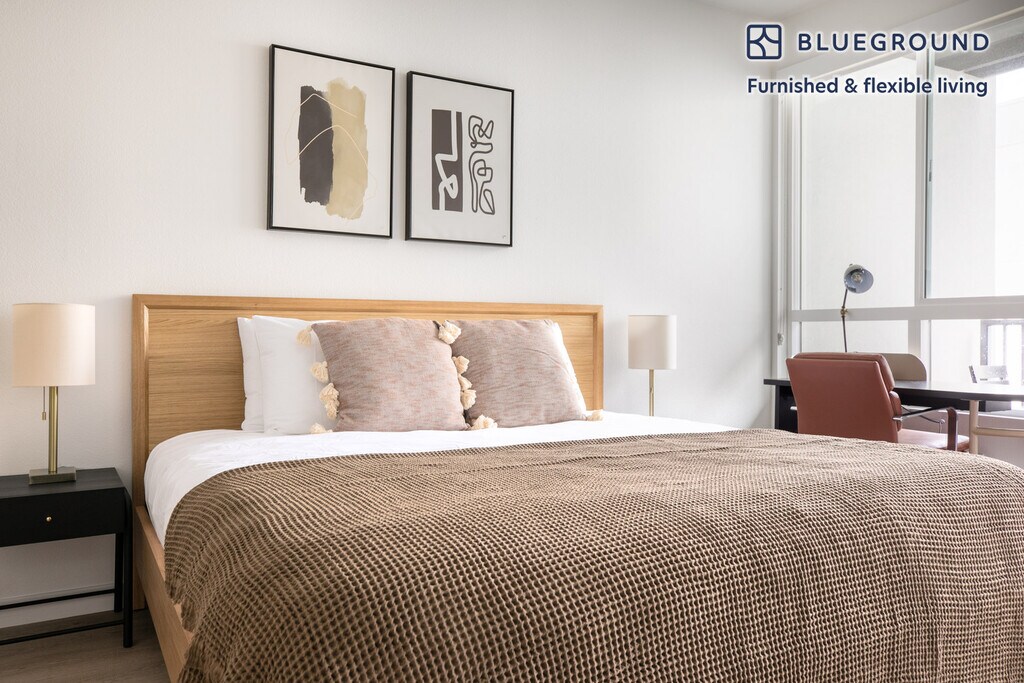 Show up and start living from day one in San Diego with this beautiful one bedroom Blueground apartment. You’ll love coming home to this thoughtfully furnished, beautifully designed, and fully equipped Mission Valley West home. (ID #SAN13) The advertised rate of $2,980/month is the lowest available price, based on a 12 month(s) stay with a move-in date of March 30, 2026. Rates vary depending on the duration of stay, season, and other parameters. For exact pricing and additional pricing components, please visit our website and enter your desired move-in and move-out dates. The rate is applicable when billed upfront; it can be higher if billed in multiple payments. Brokers are welcome to reach out. Were you looking for an unfurnished lease? Try Blueground instead and upgrade from unfurnished to furnished living: - Furnished at rates comparable to unfurnished - No setup or furniture costs - save thousands - Move-in ready - save time, just bring your suitcase Designed with you in mind Thoughtfully designed with bespoke finishes, modern furnishings, and a fully equipped kitchen, you’ll enjoy that “I’m home” feeling with this Blueground apartment. Whether you’re lounging in your beautiful living room streaming the latest and greatest entertainment on the smart TV or premium wireless speaker, or getting some well-earned rest on the superior quality mattress with luxury linens, you’ll fall in love with everything this Mission Valley West apartment has to offer. This apartment also offers in-apartment laundry. Sleeping arrangements King Bed, 70.8in/180cm Amenities Building amenities unique to this one bedroom apartment include an on-site: - BBQ Area - Dryer - Elevator - Swimming pool - Washing machine - Lounge - Parking - Pets allowed Arrival and ongoing support The entire apartment is yours to enjoy! Throughout your stay, you’ll have access to our Client Experience team through the Blueground App. You can schedule additional cleanings, submit maintenance requests, and view our neighborhood recommendations with just a few taps. We’ll share all details upon confirmation of your stay. Other things to note Building amenities may have an extra cost. This Blueground apartment has flexible lease options, allowing you to book it for one month, a year, or more. Pets are welcome, though weight limits and breed restrictions apply and may incur fees. Parking is offered based on availability and is subject to a fee. We take great pride in ensuring every photo displayed is shot in our own units with our actual furnishings. That said, we regularly refresh our decor and furniture arrangement, which may differ from what’s pictured. Also note - On-street parking near the building is not allowed