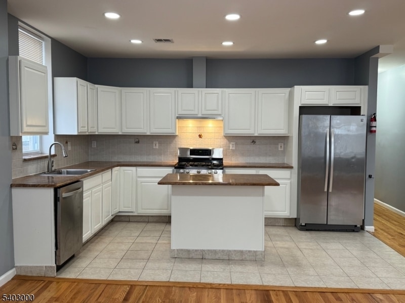 Discover this stunning 2,100 SqFt, third-floor apartment in the heart of Kearny, New Jersey! This bright and spacious apartment features four bedrooms, including a large master suite, and two full bathrooms, making it perfect for anyone that loves extra space. The open-concept layout seamlessly connects the kitchen, dining, and living areas, creating a modern and welcoming environment. The kitchen is a chef's dream, equipped with stainless steel appliances, an island with additional seating, granite countertops, and ample cabinet space for all your storage needs. The combined dining and living room area is expansive, offering the perfect space for entertaining and relaxing. This home boasts beautiful hardwood floors, recessed lighting, central air and forced heat, ensuring comfort year-round. Storage is abundant with plenty of closet space, and the numerous windows fill the apartment with natural light throughout the day. Additional conveniences include a brand-new in-unit washer and dryer and an intercom system for secure front-door communication. Situated in a prime location just blocks from Kearny Avenue, this apartment is close to shopping, dining, schools, parks, and houses of worship. Public transportation is a breeze, with bus stops right at the corner, major highways nearby, and the Harrison PATH Train Station only 2.6 miles away. This is truly a commuter's dream! Don't miss the opportunity to make this exceptional apartment your new home!