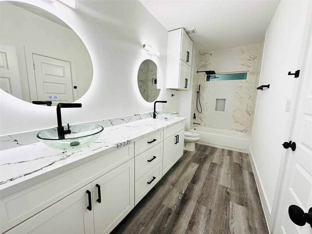 Luxury unit located in Houston Independence Heights,10 minutes from dwtwn HTX,& numerous attractions. Each unit boast 3 beds,1st & 2nd floor living rooms,2.5 baths,& 2 car garage w/all glass garage doors @ apprx 1675 sqft per unit. Additional elegant touches includes high end quartz countertops w/oversized kitchen island w/waterfall,2 pantries,double stacked solid wood cabinets w/soft close doors accompanied by 2 spice racks next to the gas range,large LED chandelier,vessel sinks @ all vanities,LED backlit vanity mirrors in all baths w/defog feat.,high ceilings,modern wrought iron handrails/balusters,electric color customizable fireplace to match any ambience wrapped w/3cm quartz,pre-wired for 5.1 surround sound 1st flr living room,smart app connected security cameras,360 degree ext LED soffit lighting for exceptional night time curb appeal,covered back patio,an abundance of windows throughout,and 2x wrought iron gates. A YES for STR NO DEED RESTRICTIONS NO HOA MLS# 17031487