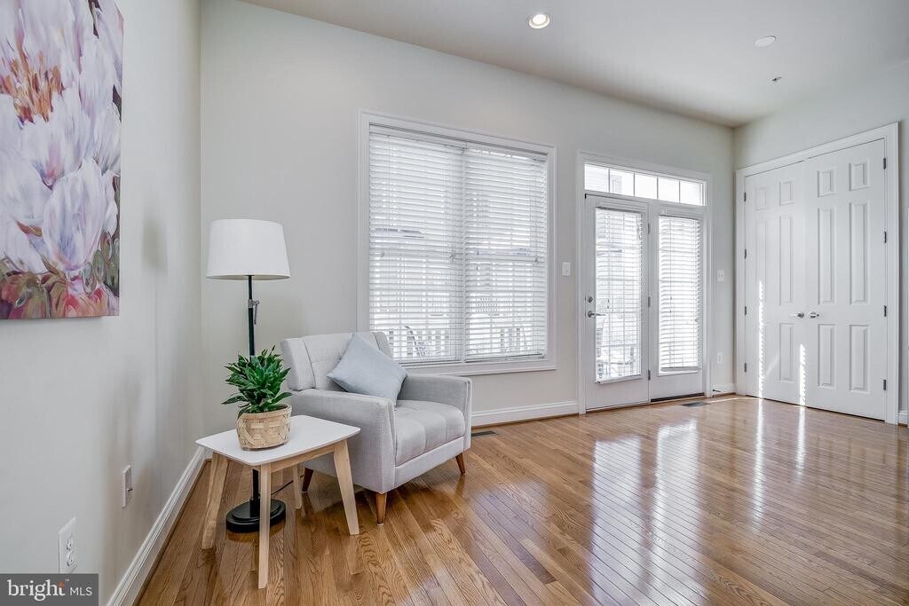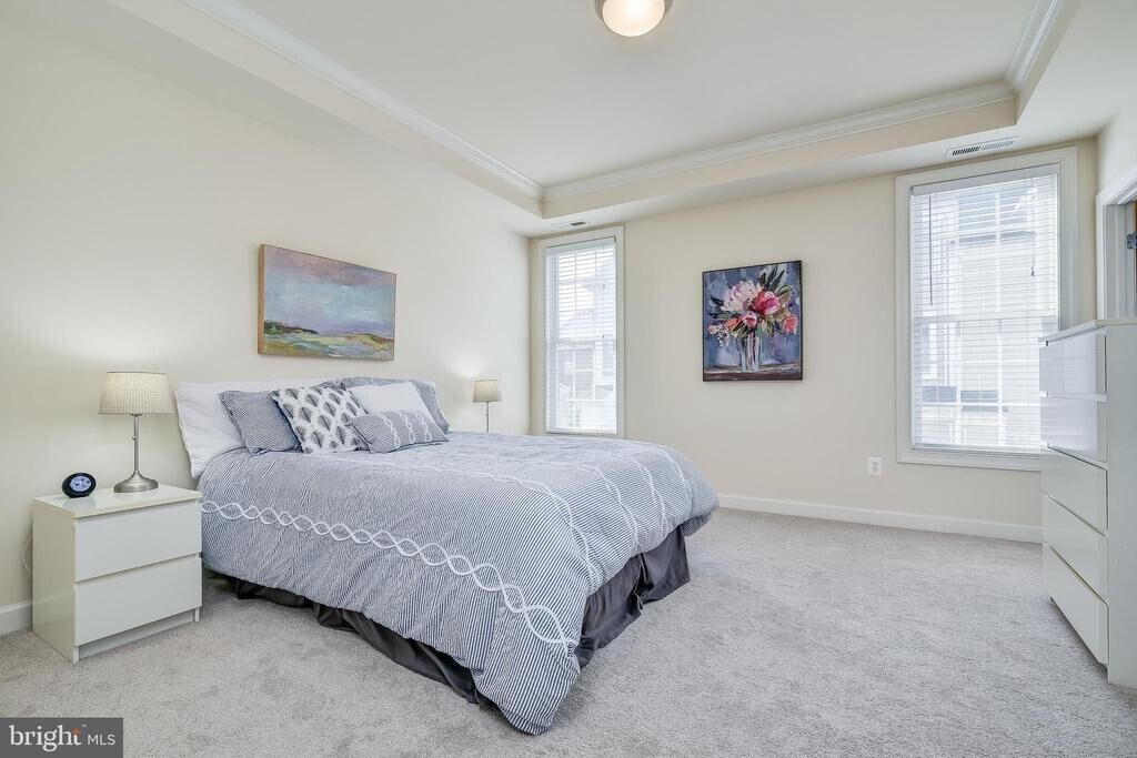 Luxurious 4-level 2-car garage town home. Amenities include hardwood floors, 10' ceilings, gourmet kitchen, granite counters, stainless steel appliances, 42†cherry cabinetry, center island, separate dining area, living room with crown molding, family room off kitchen that opens to a deck, bedroom-level laundry. The third level has the Primary Suite with tray ceiling, 2 walk-in closets and spa-like bathroom including a soaking tub, stall shower, double vanity in addition to a bedroom with an ensuit bathroom. The top level offers two additional bedrooms, walk-in closets and a jack & jill bathroom. Community includes clubhouse, exercise facility, swimming pool, walk/jog trails, tot lots, ample parking, convenient to shopping and public transportation. Immediate availability, no smoking or pets.