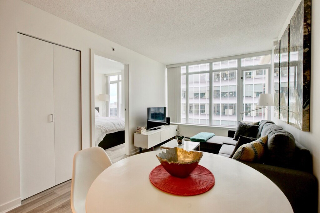 Feel at home in this delightful 1-bedroom furnished condo in Downtown Vancouver, offering 630 square feet of luxurious living space. This suite is spread across an entire floor. Check-in is anytime after 4PM and check out is by 10AM. Please do not wear shoes inside the apartment; put them by the door, where there is space for them, and ask your guests to do the same. [SI]