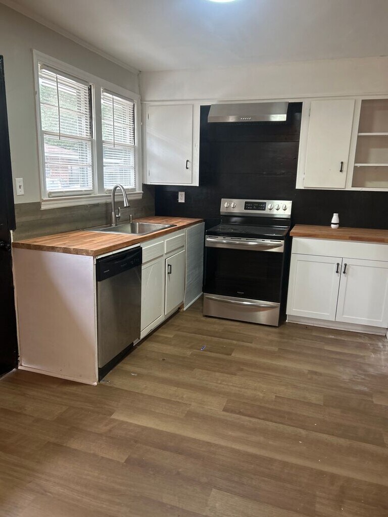 Charming and newly renovated 3 bedroom, 2 bathroom cottage located within the city limits of Thomson! This home features an inviting open-concept layout with beautiful vinyl flooring throughout. The kitchen boasts stylish butcher block countertops, stainless steel appliances, a large farmhouse-style sink, and a cozy breakfast room perfect for morning coffee. The spacious living room flows seamlessly from the foyer, creating a bright and welcoming space for entertaining. A barn-style door leads to the laundry room for added character and convenience. The primary suite offers a walk-in closet and an updated private bath. Recent upgrades include a new roof, new siding, water heater, electrical panel, and more—ensuring peace of mind for years to come. Move-in ready and full of charm, this cottage blends modern updates with timeless appeal!
