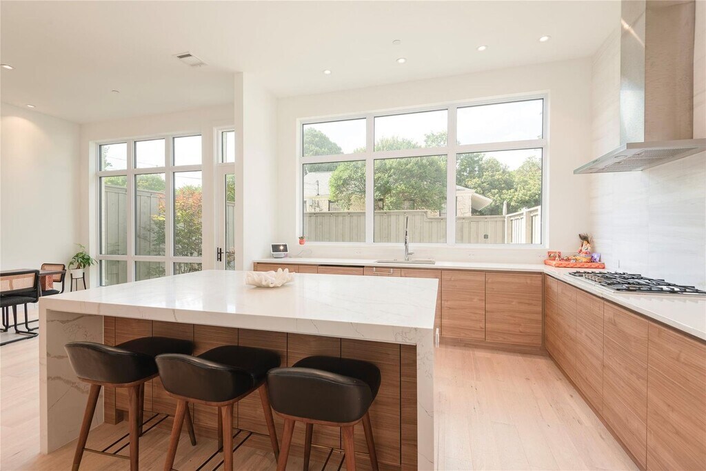 Step into this stunning townhome through a charming private courtyard that leads to a welcoming foyer. Inside, you will find a spacious, light-filled living and dining area, adorned with beautiful light hardwood floors and large windows that frame views of the serene private backyard oasis, complete with lush turf grass. The open-concept kitchen seamlessly connects to the living area and boasts a sleek quarter waterfall island, a gas cooktop, premium Bosch appliances, and a Thermador refrigerator and freezer. The first floor is thoughtfully designed with a powder bath and a two-car garage, featuring epoxy flooring and an electric charging station. Ascend to the second floor, where the hardwood floors continue into the luxurious master suite. This bright and airy retreat offers electric shades for convenience, a spa-like bathroom with dual vanities, a freestanding tub and shower combination clad in marble flooring and walls, and an expansive custom-fitted closet. Additionally, the home features two generously-sized bedrooms, each with its own private bath. With ample space, abundant natural light, and plenty of storage, this home perfectly blends comfort and elegance for modern living. Ebby Halliday Property Management residents are enrolled in the Resident Benefits Package (RBP) for $24.95 per month which includes credit building to help boost the resident’s credit score with timely rent payments, up to $1M Identity Theft Protection, HVAC air filter delivery (for applicable properties), our best-in-class resident rewards program, and much more! More details upon application.