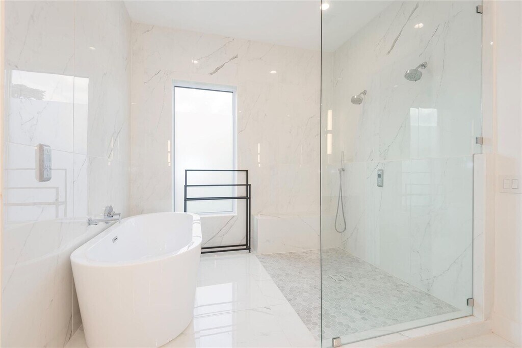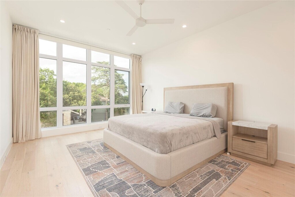 Sylvia SmithElegant Townhome with Private Backyard Oasis. Step into this stunning townhome through a charming private courtyard that leads to a welcoming foyer. Inside, you will find a spacious, light-filled living and dining area, adorned with beautiful light hardwood floors and large windows that frame views of the serene private backyard oasis, complete with lush turf grass.The open-concept kitchen seamlessly connects to the living area and boasts a sleek quarter waterfall island, a gas cooktop, premium Bosch appliances, and a Thermador refrigerator and freezer. The first floor is thoughtfully designed with a powder bath and a two-car garage, featuring epoxy flooring and an electric charging station. Ascend to the second floor, where the hardwood floors continue into the luxurious master suite. This bright and airy retreat offers electric shades for convenience, a spa-like bathroom with dual vanities, a freestanding tub and shower combination clad in marble flooring and walls, and an expansive custom-fitted closet.Additionally, this home features two generously-sized bedrooms, each with its own private bath. With ample space, abundant natural light, and plenty of storage, this home perfectly blends comfort and elegance for modern living.