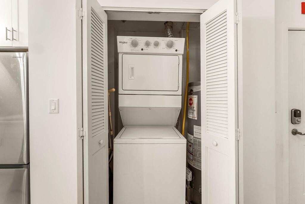 Welcome to 610 Newark Street, where convenience meets comfort. This spacious two-bedroom, two-bath residence is filled with natural sunlight thanks to oversized windows throughout. The newly renovated kitchen is designed with both style and functionality in mind, while the in-unit washer and dryer make everyday living effortless. The primary suite includes a private en-suite bathroom, offering the perfect retreat at the end of the day. Enjoy your own private terrace, ideal for morning coffee or evening relaxation. Residents enjoy a full suite of amenities, including a fitness center, dry sauna, outdoor courtyard, elevator, part-time concierge, and a private shuttle to the PATH train. Just blocks away from Hoboken’s PATH station and the 2nd St light rail, the building also sits across from local parks and will soon benefit from the highly anticipated restaurant market opening in 2026—bringing exciting new dining options right to your doorstep. This home is the perfect balance of modern comfort, community amenities, and unbeatable access to Hoboken’s best.