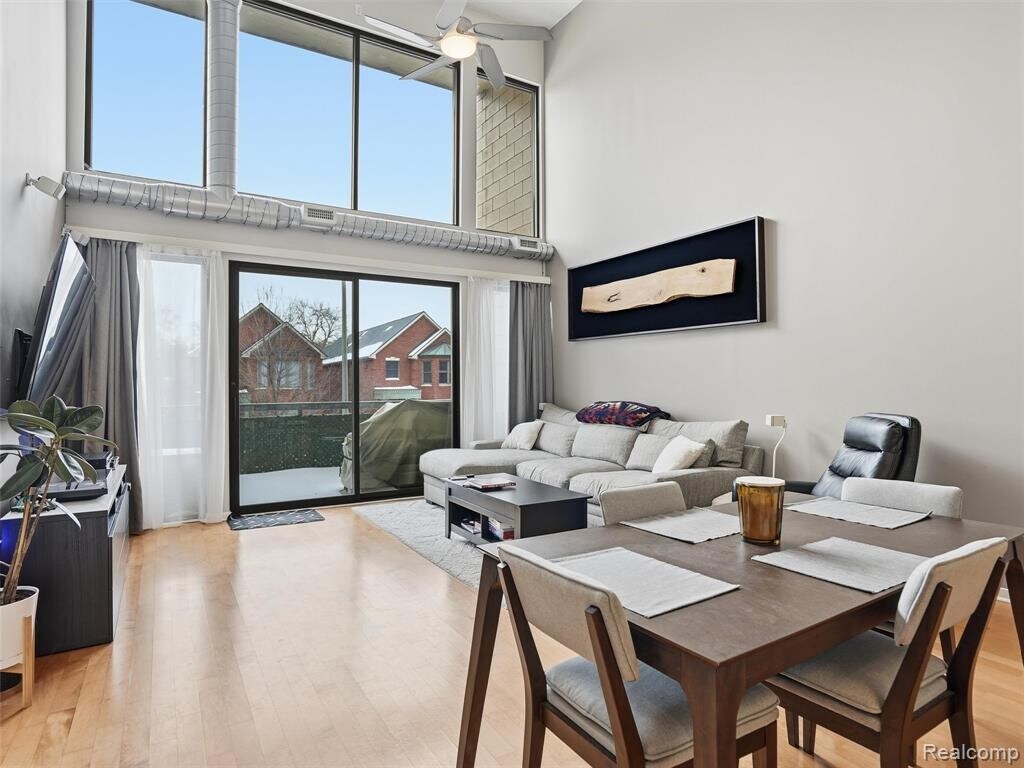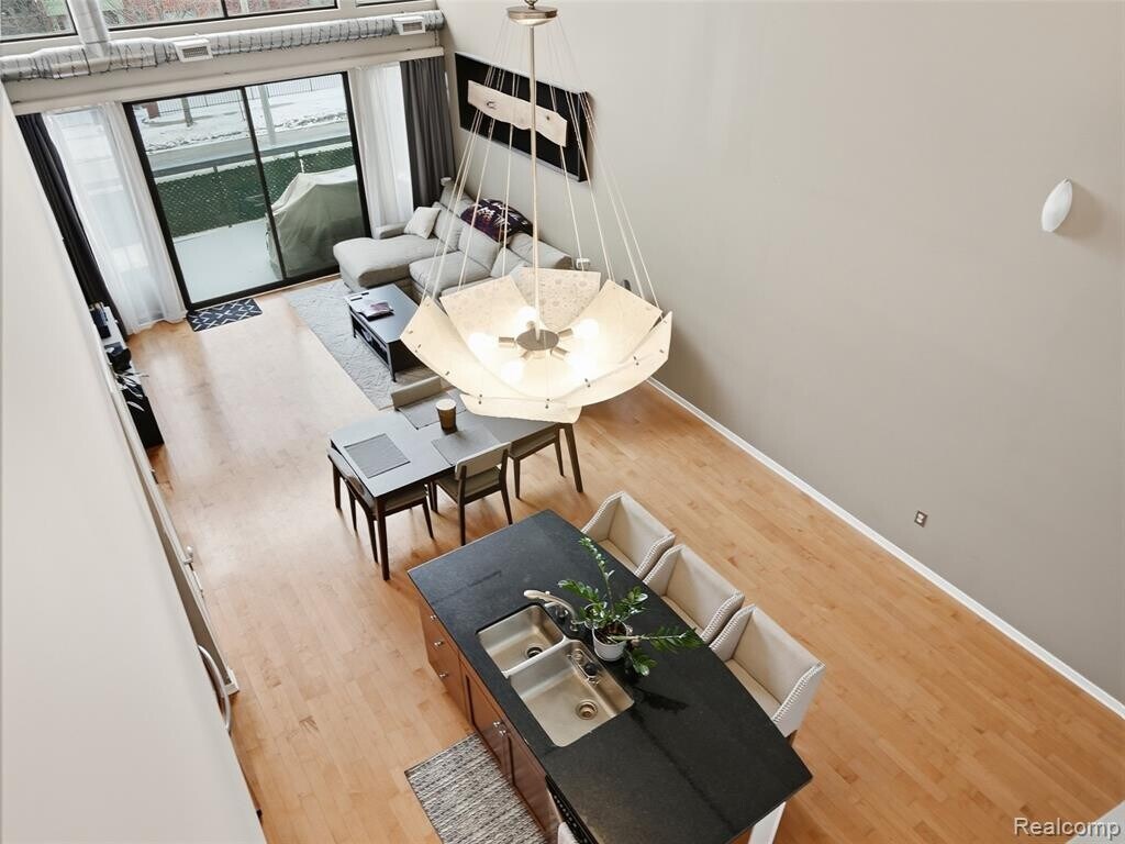 It doesn't get much better....a modern loft, just steps away from all that Downtown Royal Oak has to offer! This 2 bedroom, 2 bathroom condo has everything you're looking for - tall ceilings, tons of natural light, and an open layout that feels super spacious. The beautiful kitchen flows right into the living area, making it a dream for entertaining. Or just hang out outside - on the large balcony, that can be finished to be an outdoor living room! The large primary bedroom is on the main floor and features a walk-in closet and private bathroom, while the upstairs bedroom overlooks the outdoor balcony. This loft is as turn-key as it gets, and also features a heated parking garage. If you will love the convenience of being just a block away from downtown, then this is the stylish, low-maintenance loft you have been looking for!