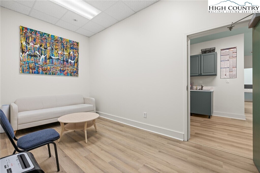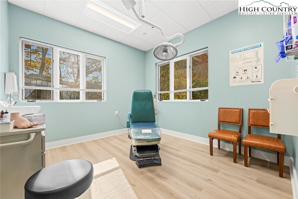 Conveniently located within one mile of Watauga Medical Center,offering strong visibility and accessibility in a desirable professional area. Beautifully updated office condominium with excellent layout and flexibility for a variety of medical or professional uses. The space includes eleven separate exam rooms or offices,four of which are currently plumbed. Features include a large waiting area,reception space,comfortable break room,kitchen,three bathrooms and ample parking to accommodate staff and clients. Covered entry with no steps,multiple storage areas and a lead-lined radiation room for additional versatility. This property is also offered for sale. See MLS #258695 for full details.