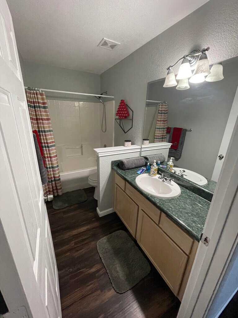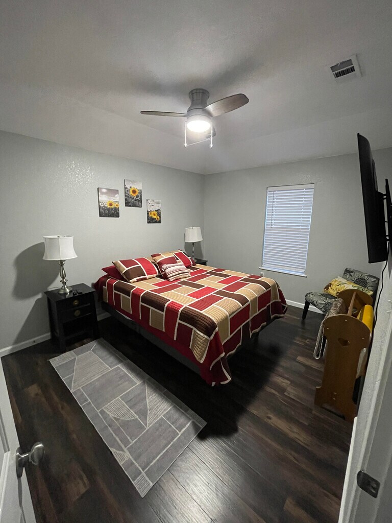 This is a fully-furnished, all utilities included, 3/2/2 corner lot house for short term lease 1-6 months, located in quiet residential neighbourhood in Temple, TX. Shorter and longer lease terms may be possible with landlord approval. Yard is maintained by the landlord. The property is located ten minutes drive from Lake Belton, Baylor Scott & White Medical Center, and VA hospital. Private backyard with fire pit. Beautiful 3 bedrooms 2 bathrooms open concept house with all electric appliances including stove, fridge, dishwasher, microwave, and washer and dryer in the garage. All LED lighting. Luxury vinyl planks (LVP) flooring throughout and the fresh coat of paint. Attached two car garage. If you're needing a temporary home away from home, this is the perfect place to be! Main bedroom with queen bed, wall mounted TV, and ensuite bathroom, bedroom #2 with twin bed, bedroom #3 with day-bed with trundle both twin size. LED TV with Chromecast and YouTube TV in living room. 300 mbps cable internet. Fully equipped kitchen. Contact via direct message or call for further information and options if interested. Viewing of the property by appointment only. Interested applicants will receive link to Tenant Magic application at one time cost of $37.50.