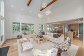 Start your summer in pure luxury by securing this brand-new, beautifully decorated, modern farmhouse rental in Southold for the month of June, perfectly situated on the desirable North Fork of Long Island. This pristine property offers an exceptional outdoor oasis featuring an in-ground pool surrounded by a spacious patio for relaxation and entertaining; inside, the light-filled main floor boasts high cathedral ceilings, a bedroom with a full en-suite bath, and a half bath, while the stunning second-floor primary suite provides a peaceful retreat with dramatic floor-to-ceiling windows overlooking the pool; finally, the finished basement adds significant living space with a large playroom and a dedicated office space, ensuring this farmhouse has every luxury and plenty of room to enjoy a beautiful, relaxing start to your summer vacation.