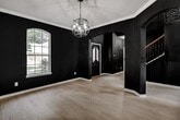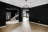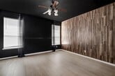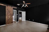 This spacious 2,600+ sq. ft. home offers style, comfort, and functionality in every corner. Upon entry, you’re greeted by a versatile front room that can serve as a formal dining, office, or second living space; complete with a custom accent wall and updated chandelier. A uniquely textured ceiling detail guides you into the main living area, where you’ll find a cozy wood-burning fireplace set and a contrasting inset wood accent wall with a TV mount. The kitchen features warm wood cabinetry, granite countertops, updated appliances, a breakfast bar, and a bright breakfast nook—perfect for casual meals or entertaining. The primary suite, conveniently located downstairs, provides privacy and ease with a walk-in closet and an ensuite bathroom. Upstairs, plush carpet runs throughout the secondary living areas and bedrooms. Each bedroom offers generous closet space, updated lighting, and plenty of room to make your own. Step outside to enjoy the backyard oasis; relax under the covered patio or entertain guests in the extended sitting area, ideal for grilling or gatherings.