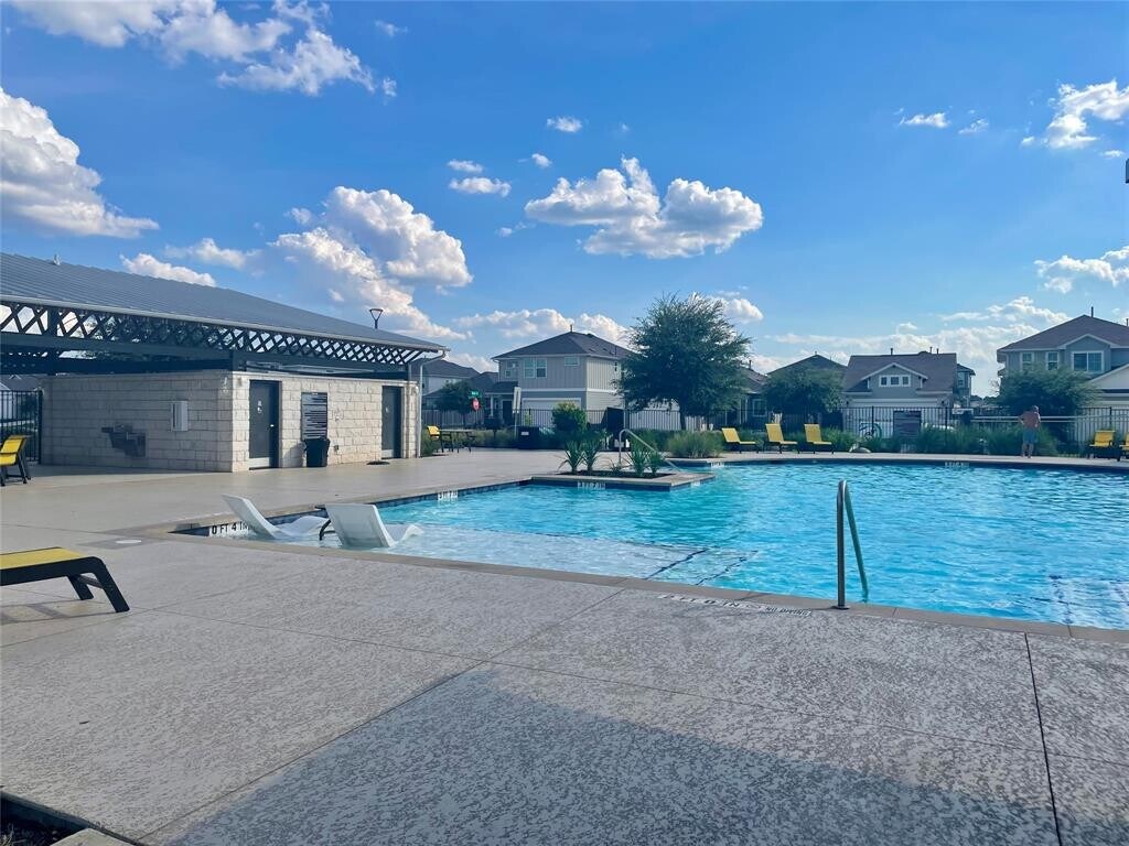 Welcome to this beautiful 3-bedroom, 2-bathroom home located in the desirable Vistas of Austin community. Situated on a corner cul-de-sac lot, this property has an expansive backyard that backs to a peaceful greenbelt—offering extra privacy with no immediate rear neighbors. It's the perfect space for entertaining or simply relaxing outdoors. Inside, you’ll find a spacious open-concept floor plan featuring a versatile flex space just off the living room. The kitchen and living area flow seamlessly. The primary suite is filled with natural light and includes a stylish en-suite bathroom with a modern black-tiled shower. On the opposite side of the home, two additional bedrooms share a full bathroom. Refrigerator, washer, and dryer are available for tenant use (please note they are not maintained by the landlord). Enjoy access to great community amenities, including a walkable neighborhood pool, playground, and covered pavilion. Please reach out if this looks like your next home!