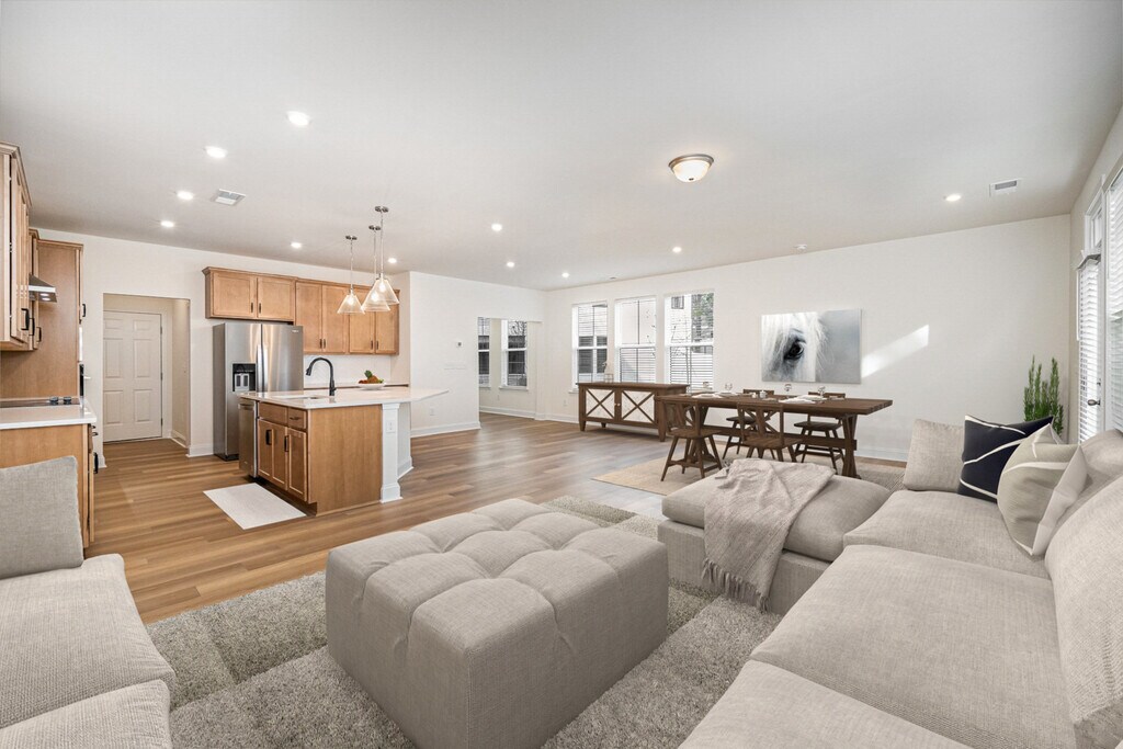 READY FOR MOVE IN! Beautiful 3-bedroom end unit townhome in South Charlotte neighborhood! Open floorplan, with gourmet kitchen and large windows boasting natural light throughout! Upper primary bedroom has dual closets, dual vanities and walk-in shower. There's also a spacious bonus room! Two car attached garage that includes an EV charging station! New build located in a great school system! Ideally located close to shopping, restaurants and entertainment. You can walk across the street to Harris Teeter! Laundry machines are included in the rent. *Furniture in photos is not included* Rent: $3,500 Deposit: $3,500 Application fee: $60 per adult Call Simpson Properties to view NC Real Estate Broker