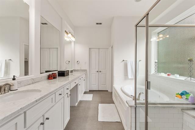 Situated in a quiet neighborhood, this beautiful Landon built home boasts a bright, open floor-plan, with two bedrooms situated on the first floor, great for trans-generational living. This charming property features two spacious living rooms, a modern kitchen with stainless steel appliances and numerous upgrades. Ideally situated in the heart of McKinney's bustling economic district, just minutes from Hub 121, District 121, and The Allen Farm, its location provides a plethora of entertainment options rivaling those of Legacy West and The Star. Walking distance to TPC Craig Ranch and Lifetime Fitness offering pickle-ball courts, a cutting-edge training floor, and a serene pool and spa. The home features ceramic tile flooring, marble countertops, and remote-controlled Hunter Douglas shades, along with plantation shutters and motorized blinds at the rear. It is designed for energy efficiency and zoned for Frisco ISD. Property includes fridge, washer & dryer.
