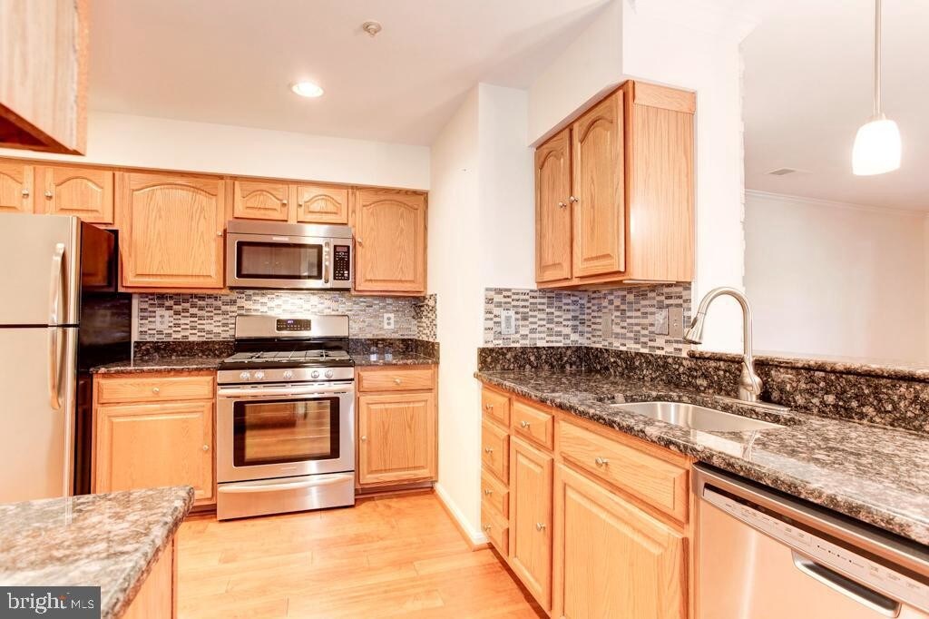 Welcome to 6101 Wigmore Lane Unit C, a stunning 2 bedroom, 2 bath condo located in desirable Kingstowne. This bright and cheery home features a kitchen with granite counters, stainless-steel appliances, a breakfast bar and an accent wall of natural stone tile. Beautiful wide plank hardwood floors flow in the living room, dining room, kitchen and hallway, and stylish updated lighting has been installed throughout. Relax by the cozy fireplace in the living room or step out and unwind on the oversized patio. The owner's suite has a large walk-in closet with custom built-in shelving and a private bath with dual sink vanity, jetted Jacuzzi tub and separate shower. There is also an in-unit washer and dryer for easy convenience. Kingstowne residents can enjoy a variety of amenities including swimming pools, fitness centers, walking paths, tennis and basketball courts, tot lots/playgrounds and numerous community clubs and activities. It is also conveniently located close to Kingstowne Town Center, 2 Metro Stations and all major commuter routes.