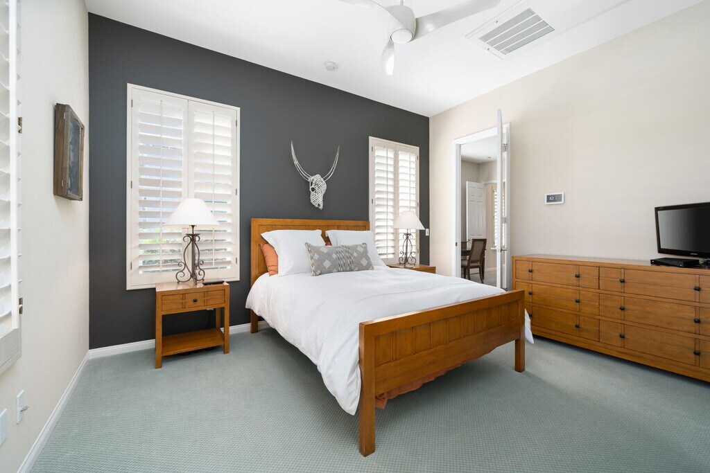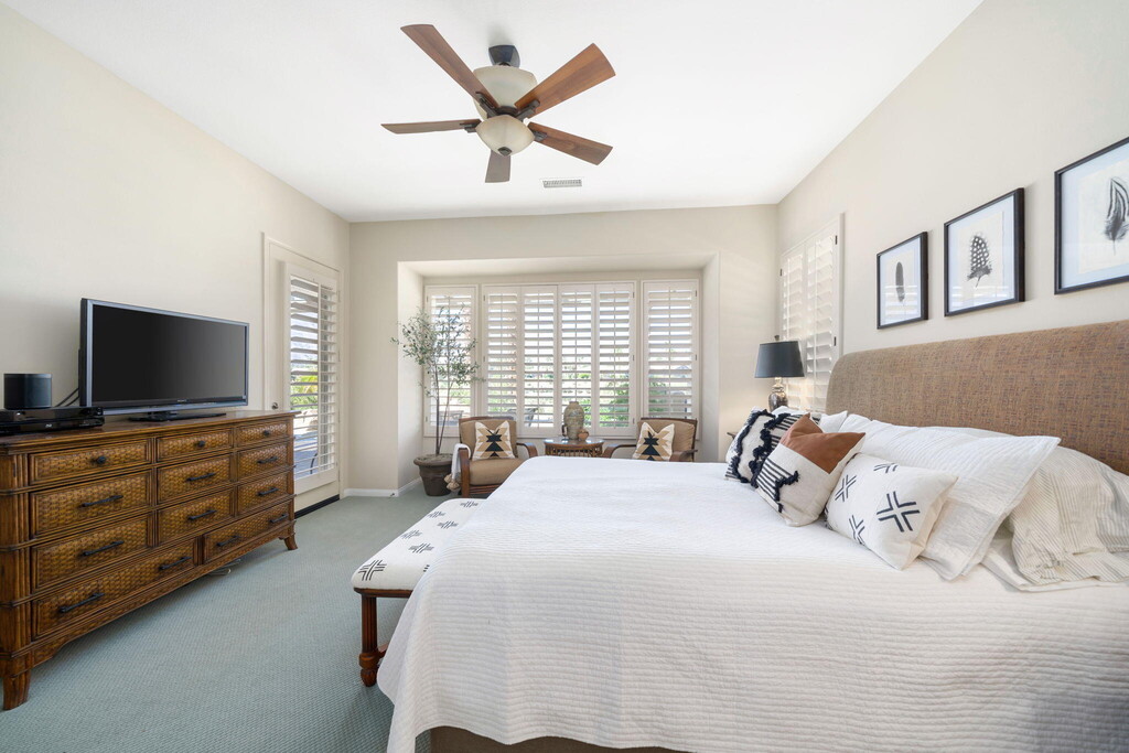 RENTED 12-29-24 thru 4-10-2025. RENTED 9-1-25 thru 4-3-2026. Owner using the home AVAILABLE all other months..High season 8500.00 . Summer months 4800.00. Owner has install SOLAR on the roof. Plus he has EV in garage for any electric cars. Trilogy La Quinta Vacation Rental - 55 and Over Community - Exceptional Monarch Model with attached Super Casita located on the golf course with a waterfall spa and sweeping views of the 13th and 16th fairways,and the picturesque lake in between. Coral Mountain,Santa Rosa Range and San Jacinto majestic views complete the home's panoramic backdrop. This beautiful home comes with 'EV car charger on site'. With a nice spa with views of mountains and golf course. This sought after plan has 3 bedrooms,3 baths,a den/office,and offers 2091 sq ft. of luxurious living space. Tenants have access to all amenities that Trilogy La Quinta has to offer. Rates are as follows: Jan-Mar-April $8500,May and on $4800