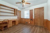 Franceanna CampagnaRanch-style home in University Terrace! Features 4 Bedrooms, 2.5 baths, a spacious entry hall, a formal living room and dining room combination, and a giant den. Laminate floors in living room, dining room, kitchen and breakfast nook. The den has parquet flooring with a vaulted ceiling, built-in bookcases and a wood-burning fireplace, all overlooking a large patio and a fenced-in yard. Kitchen has granite countertops and updated appliances including a 5-burner gas cooktop, a double wall oven, dishwasher, OTR microwave oven and vented hood plus a refrigerator. Bedrooms have ceiling fans and 2-inch faux wood blinds. Closet space galore in this house. There is a giant laundry room with additional space for a refrigerator or freezer and a half bath off the kitchen area. The split 4th bedroom can be used as a bedroom or a study with built-in bookcases and double desk. Home includes an attached 2-car garage with opener, plus a fenced-in back yard with full lawn sprinkler system. Washer and dryer at the property is not warrantied. Tenant pays all utilities and is responsible for lawncare.