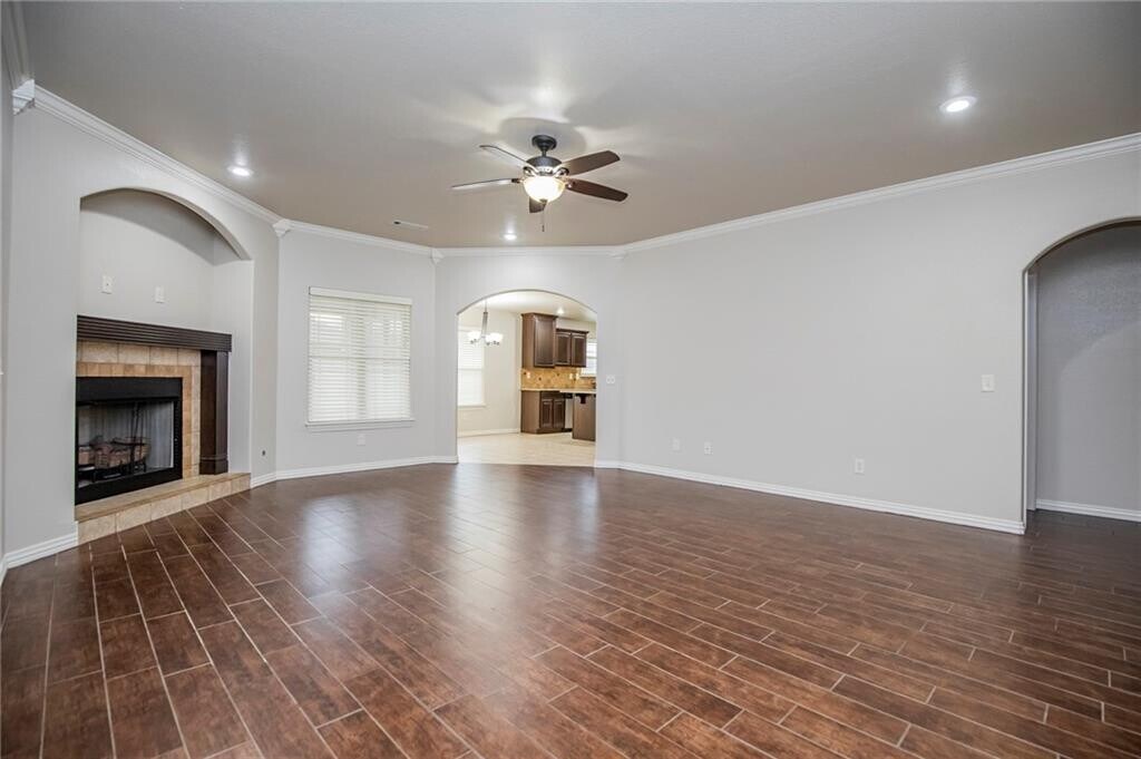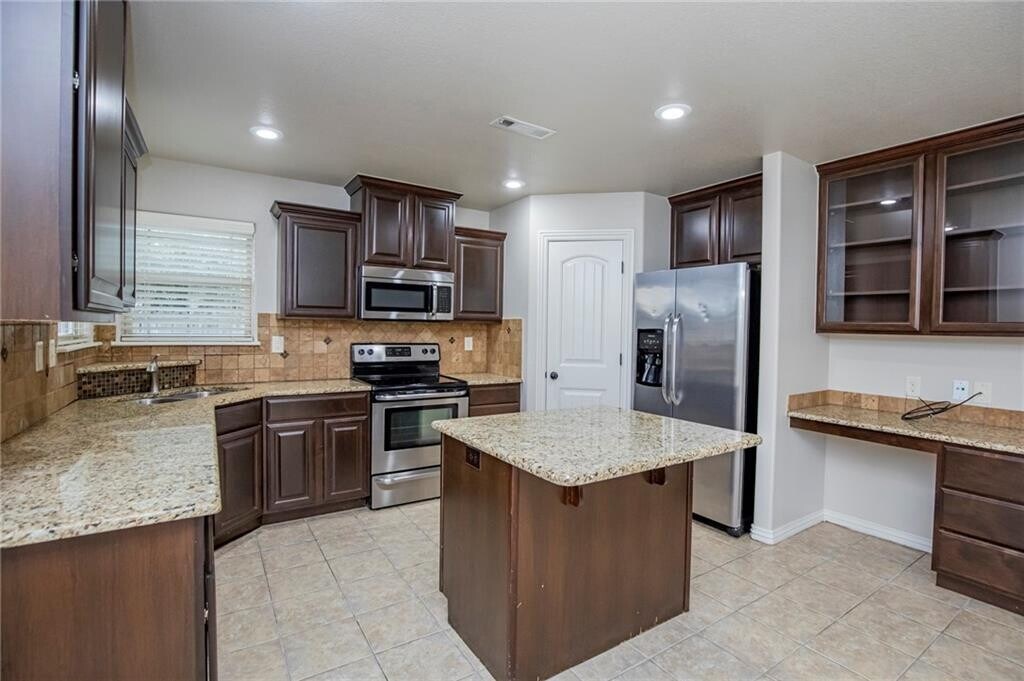 Great home just minutes from shopping and I-49. This 3 bed 2 bath home features hardwood flooring in living room along with gas fire places and crown molding. Kitchen has granite counter, stainless appliance, pantry and additional built in desk. Primary bathroom includes double sinks, separate tub and tile shower with large walk in closet. Back yard is fenced with covered patio area. MLS# 1330710