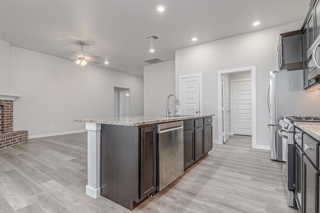 You will never have neighbors behind you or across the street! The folks on either side in this pretty cul-de-sac are really sweet! Beautifully landscaped backyard with turf is easy on the eyes & along with xeriscaped front yard is very low maintenance. Island bar will seat 4, dining area has room for 8 chairs. Reverse Osmosis unit & water softener just installed. Coat closet, linen closet, granite & 2 blinds. High quality vinyl planking. Sep tub & shower. Wait until you see it! Owner Agent."
