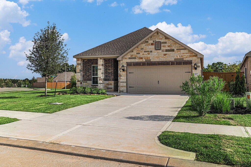 Welcome home to a beautifully crafted brick single-story home nestled in the heart of Conroe,located within the amenity-rich Wedgewood Forest community. This residence offers an ideal blend of comfort and style with an easy-flow layout,rich LVP flooring,neutral tones,recessed lighting,and a cohesive,modern design throughout. Your inner chef will love this sleek kitchen,featuring stainless steel appliances,a stylish backsplash,granite countertops,large center island,and a spacious pantry. Perfect for entertaining,the dining area offers direct access to a covered back patio overlooking a private,fenced backyard. Retreat to the spa-inspired primary suite,complete with a walk-in shower,soaking tub,and thoughtfully designed finishes for a serene escape. Take advantage of community amenities: Tennis court,playground,community lake,walking trails,and shade ramada. This turn-key home offers access to I-45,highly desired schools,shopping,and dining! MLS# 24326740