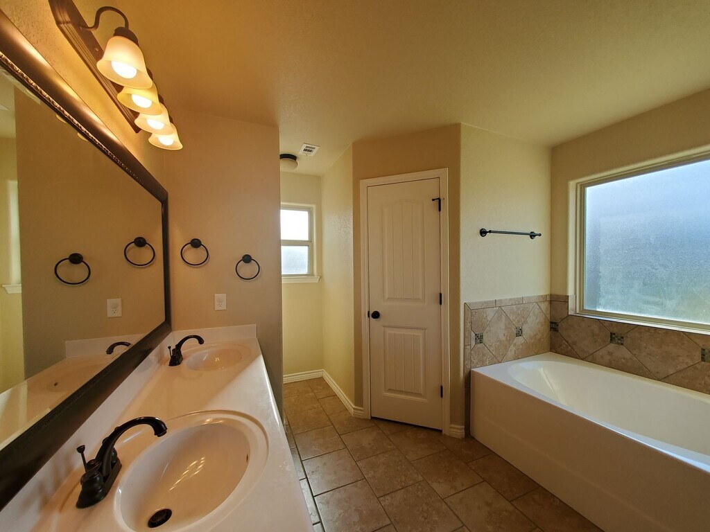 This 4-bedroom, 2-bath single-family home for rent in Killeen offers a comfortable and well-appointed layout with a mix of ceramic tile and carpet flooring throughout. The living area features a brick fireplace, while ceiling fans are installed throughout the home for added comfort. The spacious kitchen includes granite countertops, espresso-toned cabinetry, and stainless-steel appliances, including a glass-top stove, microwave range, side-by-side refrigerator with ice and water dispenser and bottom-drawer freezer, and a dishwasher. A breakfast bar and dedicated dining area provide flexible dining options. The primary bedroom features an ensuite bathroom with a dual vanity, garden tub, and separate shower. Additional conveniences include washer and dryer connections, a Vivint security system, and a sprinkler system. Outdoor features include a covered back patio, a fenced backyard, and an attached two-car garage. This home is pet-friendly. New photos and 360° virtual tour coming soon! Appointments aren’t required to tour. Contact us or stop by our Killeen office to learn more and see this home in person once it becomes available! We are located at 1020 W Jasper Dr, Killeen, TX 75642.