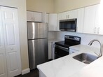 Step into comfort and style in this beautifully updated 3-bedroom, 2-bathroom residence located in a secure gated community. Featuring rich wood floors throughout, this home offers a warm and cohesive feel from the moment you enter. The modern kitchen is a standout, showcasing crisp white shaker cabinets, gleaming granite countertops, and stainless steel appliances—perfect for both everyday living and entertaining. Enjoy the convenience of an in-unit washer and dryer, and unwind in the spacious screened-in patio, ideal for morning coffee or evening relaxation. Residents enjoy access to resort-style amenities including a sparkling pool, rejuvenating hot tub, and a handy car vacuum station. With two assigned parking spots and cable included, this home combines comfort with practicality.