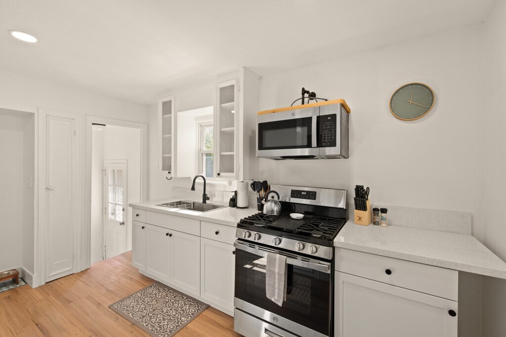Enjoy the perfect mix of comfort and style in this beautifully remodeled 3-bedroom home located in Euclid. Ideal for families, friends, or small groups, this home offers modern amenities and a cozy atmosphere for your stay. With two bedrooms on the main floor, each featuring a plush queen bed, and a third spacious bedroom upstairs, this home ensures comfort and privacy for all guests. The full bathroom on the main floor has been updated with modern fixtures, making it easy to refresh and recharge after a day of exploring. This home boasts three comfortable bedrooms, each equipped with a queen bed for restful nights. The fully remodeled interior features modern design and finishes throughout, including a full bathroom on the main floor with contemporary fixtures and a tub/shower combo. The open-concept living areas provide cozy spaces for relaxation and gatherings, while the fully equipped kitchen allows you to prepare meals with ease. A spacious yard offers plenty of room to enjoy with family or your furry friends. A maximum of 2 dogs are allowed for a flat fee of $125 per stay. Requests to bring a 3rd or 4th dog are subject to approval and will incur an additional $100 fee. Undisclosed pets will result in a $150 fee and may lead to reservation cancellation without refund. You will be responsible for any additional cleaning or damage fees. Conveniently located near Downtown Cleveland, The Cleveland Clinic, local attractions, shops, and restaurants, this remodeled Euclid home is the ideal spot for your next getaway. The property has decibel readers that track noise levels outside and a $500 fine for excessive noise levels between 10pm and 8am. No indoor smoking is allowed, with a minimum $500 charge for extra cleaning, but smoking outside is permitted. No underage consumption or drugs are allowed, and no parties or large gatherings are permitted. A $150 fee will be charged for late checkout without prior notice. The fireplace is for decorative purposes only and should not be used. Guests are kindly asked to remove their shoes when entering the house to keep the space clean and comfortable. If the property is equipped with a grill, guests are responsible for refilling the propane tank if needed, but reimbursement is available with a receipt. Checkout instructions are provided but not mandatory. [SI]