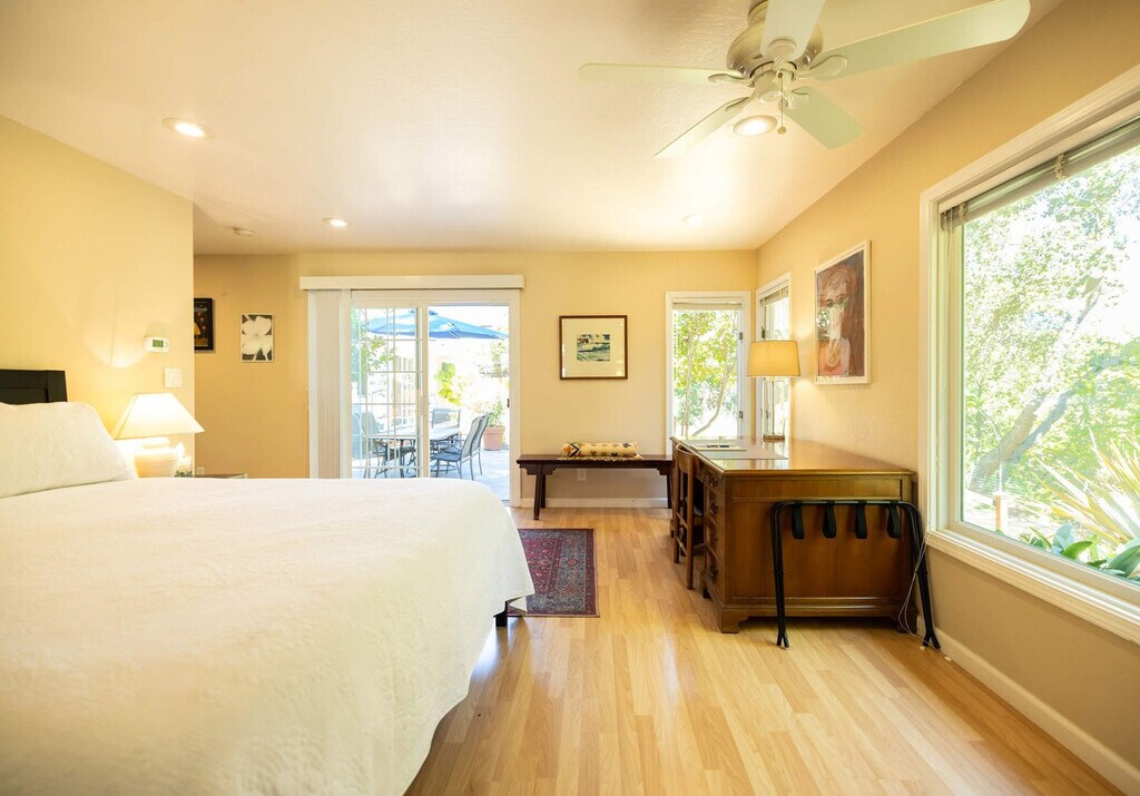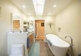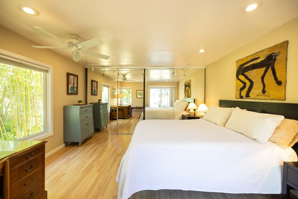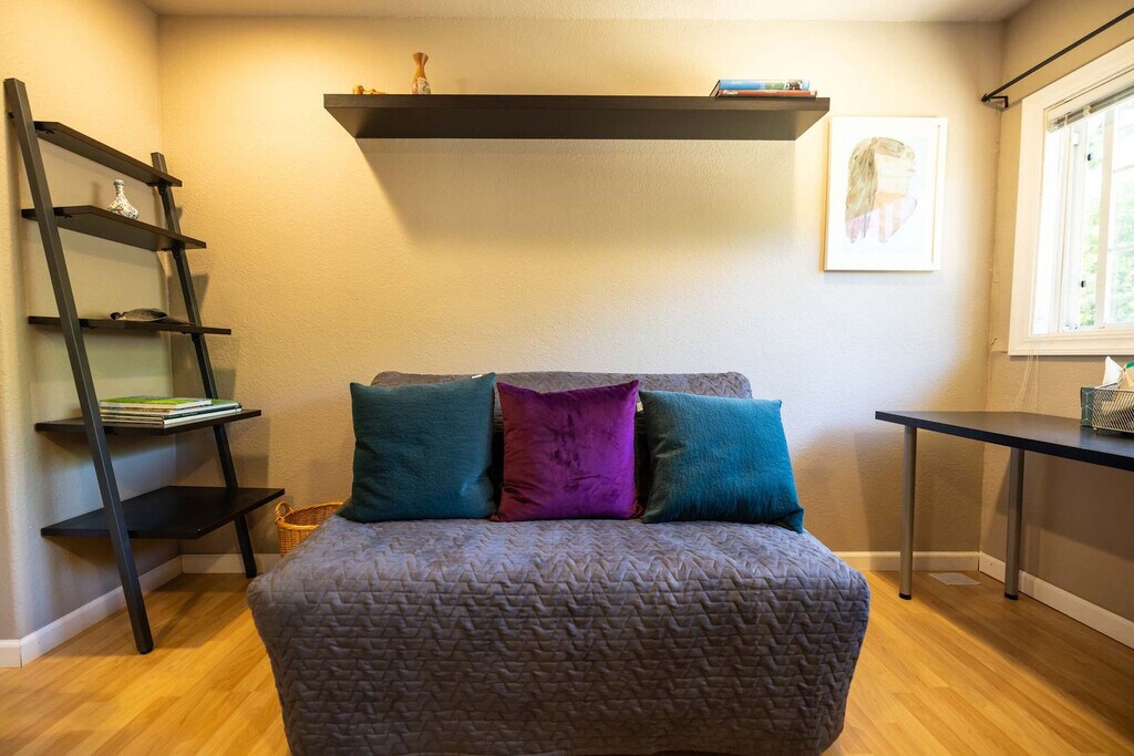 Forget your worries in this spacious and serene apartment, designed for comfort and relaxation. With three full bedrooms and a convertible bedroom/office, this home can accommodate up to seven guests, making it perfect for families or groups. Outfitted with all the essentials for an extended stay, this apartment features a full kitchen and dining area, central heating, cozy furnishings, and a washer and dryer. Enjoy home-cooked meals and make use of the crib and high chair to ensure the whole family stays comfortable. Sleep up to seven guests with three full bedrooms, a convertible bedroom/office, and an extra air mattress. Step out into a lush, two-tier backyard with a trimmed lawn leading down to a shaded garden lounge. Perfect for morning coffee or an easy evening wind-down, this serene outdoor space offers a comfy place to relax at any time of day. The convertible bedroom/office provides a flexible space for remote work, ensuring you can stay productive while enjoying the comforts of home. [SI]