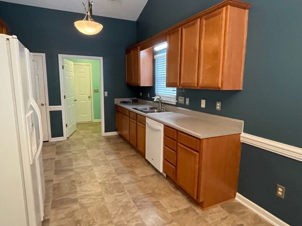 Nice 1 story single family house in Walnut Crossing. Large living room with gas log fireplace. Eat in kitchen with electric range, refrigerator, dishwasher and microwave. 3 bedrooms and 2 baths. Laundry room and 2 car garage. Spacious back yard and patio area. Gas heat, central air, city water/sewer and gas water heater. Call Burlington Rentals to view the property .