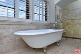 Gated Spanish Colonial Estate with Detached Bonus Studio featuring High ceilings and a loft, Private Yard & Parking for 8-10 Cars in Prime Carthay Circle. This historic villa blends authentic Spanish charm with modern upgrades, featuring wrought iron and stone details, walnut floors, soaring ceilings, stained glass, and an oversized stone fireplace with integrated 5.1 surround sound. The Viking Pro kitchen and spa-level baths with natural stone, Grohe and Newport Brass fixtures elevate everyday living. The primary suite offers a fireplace, private balcony, clawfoot soaking tub, and expansive walk-in shower. A standout feature is the detached carriage house ideal for studio, office, guest suite, events, or collector car use complete with beamed ceilings, loft, stainless kitchen, Saltillo tile, commercial HVAC, and 1.5 baths. The beautifully landscaped backyard provides rare privacy and tranquility behind gates. Additional amenities include CCTV/security system and wireless entry. Prime location adjacent to Beverly Hills, near The Grove, LACMA, and upcoming Metro access. Owner pays Gardener, tenant responsible for utilities. MLS# 26651573