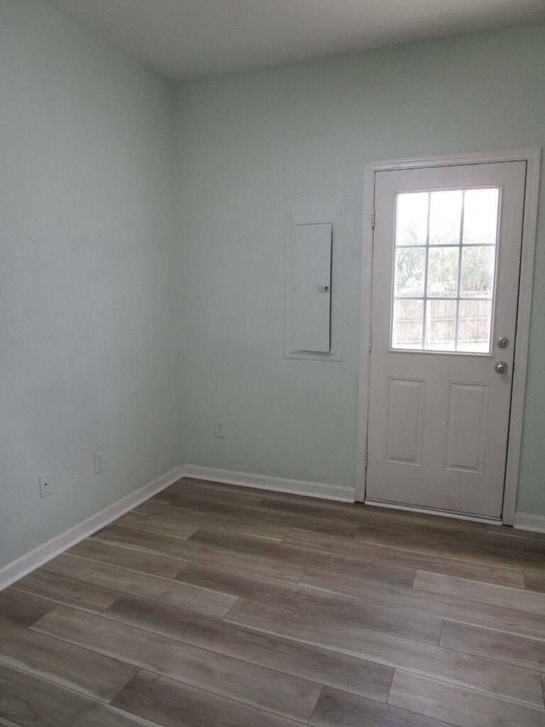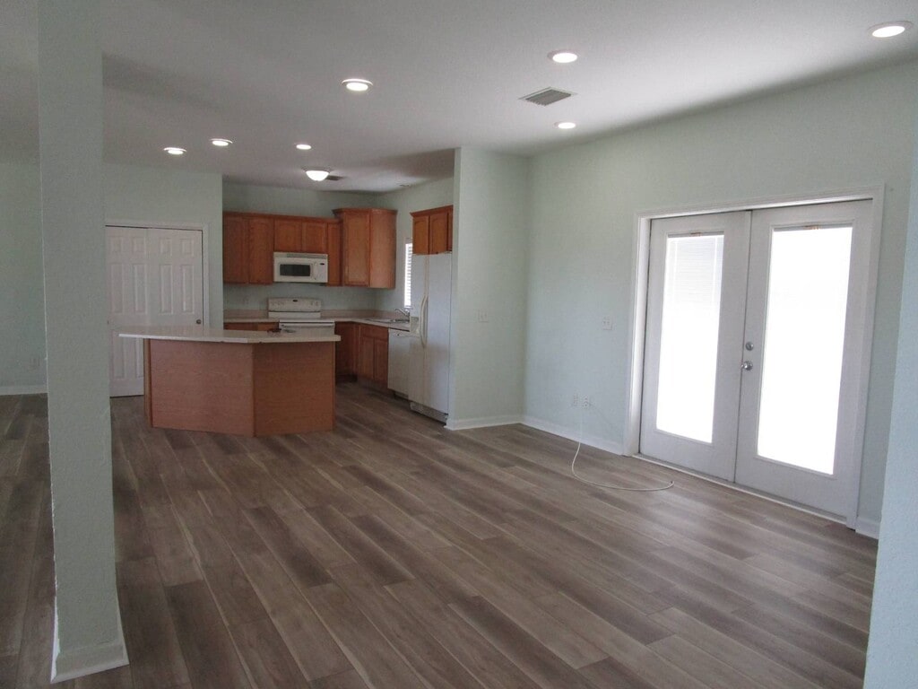 Spacious and open and ready to call home! LARGE 2 bedroom one bath semi private home with just completed new paint and flooring. Huge open living, dining, kitchen with island. Lots of beautiful windows and a french door sporting just a peek of Lake Jackson across the street. Massive 60 foot long front porch. Large yard. Water sewer and lawncare are included. This home is a unique situation. It is a single family home at the entrance to a small quiet 55 plus mobile home park. The small mobile home park office is attached to this home, which is why we are calling it "semiprivate". Across the street from Lake Jackson, with small community lakefront access. Available not and ready to call home. We are a no smoking, no vaping, and no marijuana use property. A pet would be considered on an individual approval basis. Procurement would constitute first month rent plus 2 month security deposit. We never charge an upfront application fee, but once we have found you the perfect home, a $50 processing fee would incur. Showings are set up in the order that applications are received and reviewed.