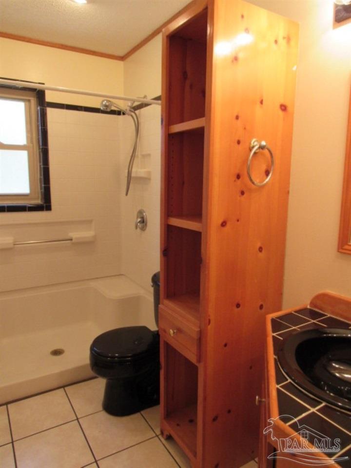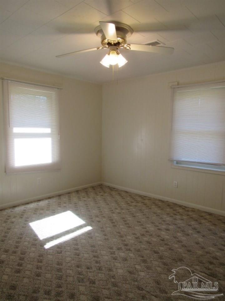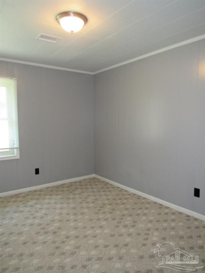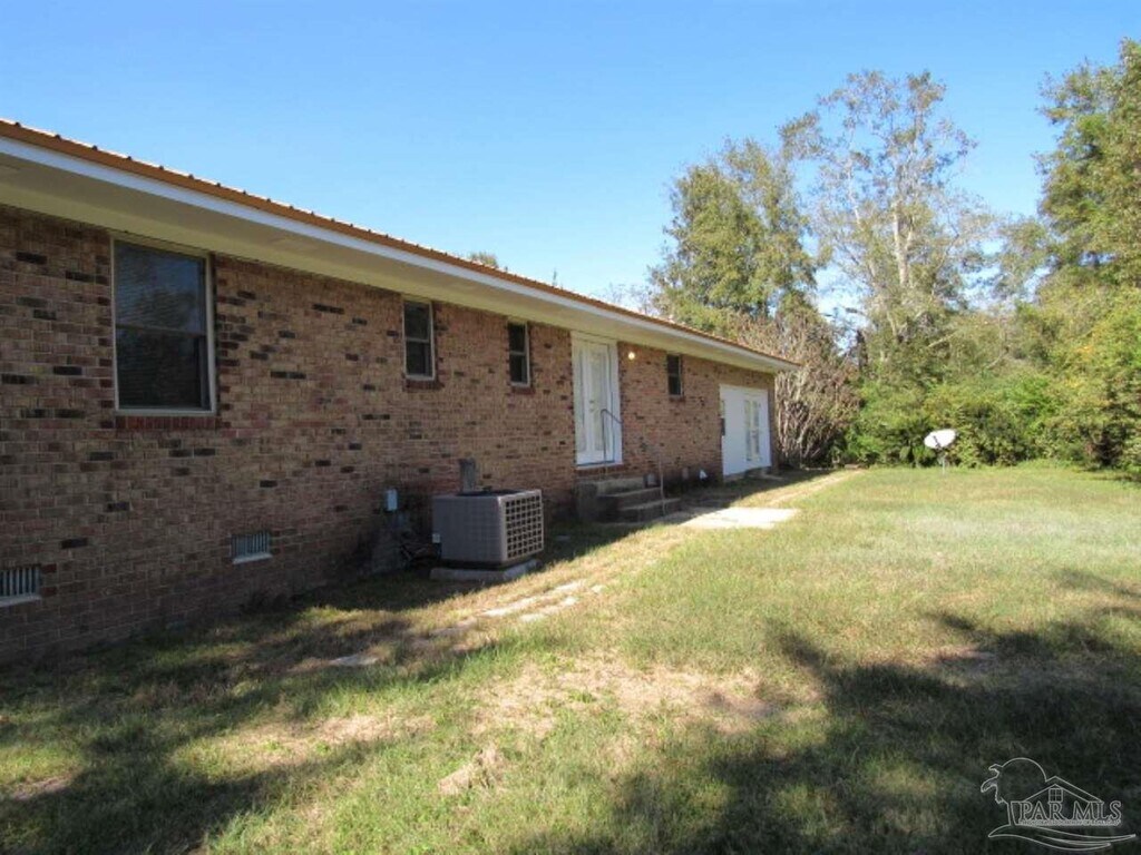 Nice brick home in Molino. Located on just over an acre. RV space with power & water. Tile entry. Living room with tile floor & ceiling fans. Kitchen/dining combination with tile floor. Large fully equipped kitchen with knotty pine cabinets. Master bedroom with tile floor,ceiling fan & two closets. Carpet in guest bedrooms. Large inside laundry room plus office area. Large bonus room (not included in square footage) has french doors to backyard. Gas stove & water heater. Shed is "as is". No pets. No smokers.