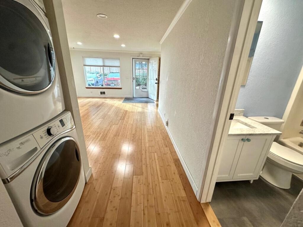 MOVE IN SPECIAL- Get $300 off your monthly rent through the rest of the 2025! (Pay only $1695 per month through 2025) This cozy Lynnwood condo offers 2 bedrooms and 1 bathroom with an open layout illuminated with natural lighting. This unit includes thoughtful details such as bamboo flooring and marble bathroom countertops. The kitchen is fully equipped with a refrigerator, dishwasher, microwave and oven while the in-unit washer dryer add convenience to your laundry days. Since this is a condominium, garbage/water/sewage is included in rent making keeping up with bills easier! An off-street, dedicated parking stall and a first-floor walk-up allow for easy access. Additionally, a dedicated storage unit is available for all your belongings, ensuring you have plenty of space to keep your living area organized and clutter-free. Whether you are looking for a low-maintenance living space or a comfy place to call home, this condo offers the perfect blend. Don't miss out on the opportunity to make this lovely unit your new home. Submit an application today to schedule a viewing!