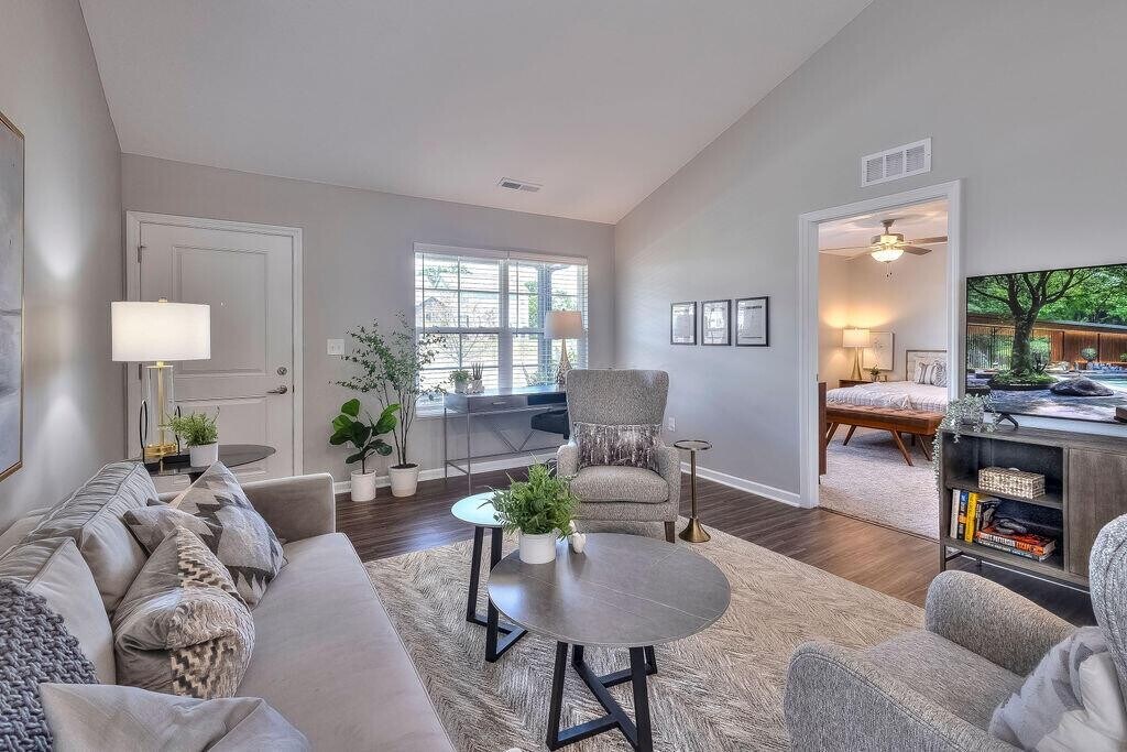 Experience ranch-style living without the hassle of interior or exterior maintenance. At the Residences at Phillips Farm,each apartment home was thoughtfully designed to rival a living experience like a single-family home. Wooded views surround this community! This two-bedroom ranch-style apartment home offers a variety of unique features including a two-car attached garage,spacious living area with 12-foot vaulted ceilings,private patio,stainless steel appliances,granite countertops,and more!. Amenities include a 24-hour fitness center,free Starbucks coffee bar,clubhouse with fireplace,outdoor grills and firepits,community garden,dog park and walking paths. Pet friendly! Say goodbye to the stress and upkeep of homeownership! Schedule a tour today!