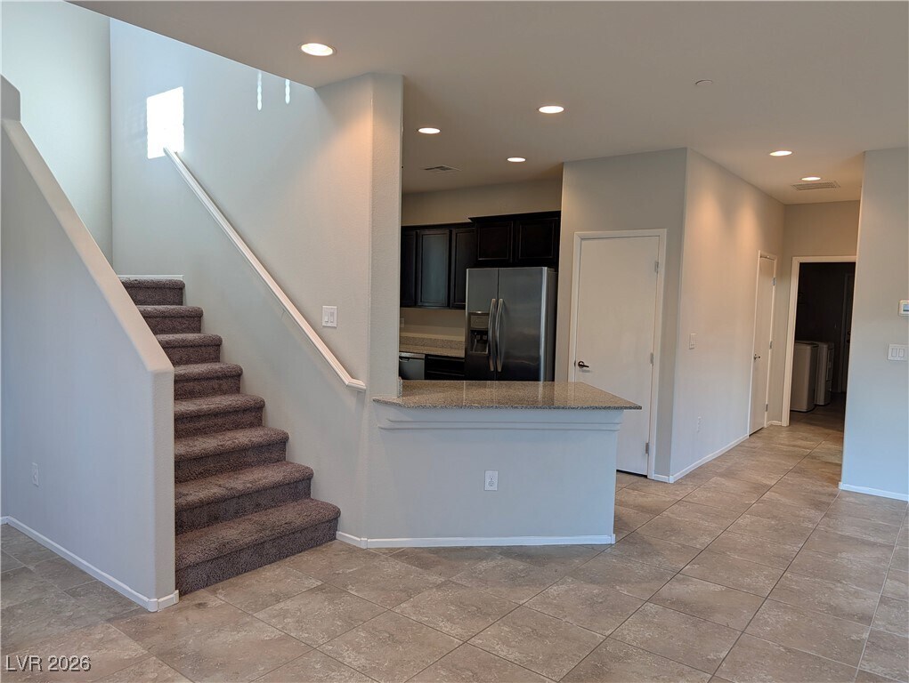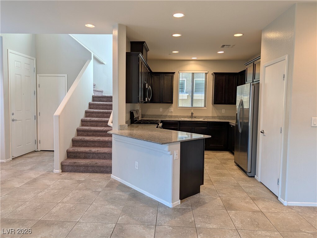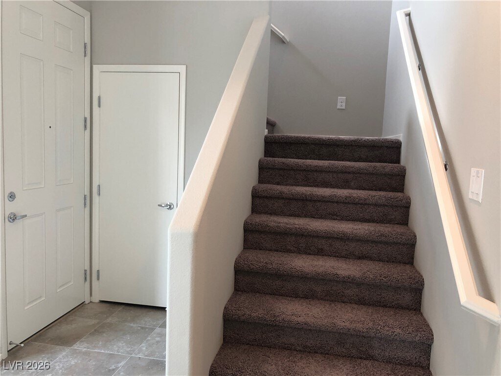 Enjoy coming home to a gated Spring Valley community with many amenities: Pool, Spa, Playground, Picnic, Pet run path; just minutes from I-215, Costco, IKEA, top-rated schools, parks, dining, and more. This spacious 4-bedroom home includes two separate car garages and a covered patio—tile downstairs, and carpet upstairs. The kitchen features quartz countertops, 42-inch espresso cabinets, a large farmhouse sink, and is fully equipped with all stainless steel appliances. This floor plan includes one bedroom and a full bathroom on the main floor, making it ideal for guests or multi-generational living. Every bedroom is generously sized with a walk-in closet. The master bathroom has a double vanity and a separate tub and shower.
