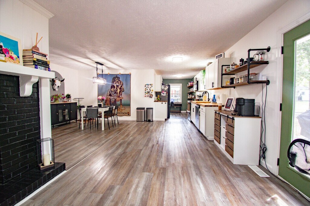 This updated 4 bedroom home offers over 1800 square feet, LVP flooring, and 2 beautiful decorative fireplaces! One of the bedrooms has been converted by the owner into a large walk in closet and the hanging racks will come with the property. This space can be used as an extra closet/storage space or a fourth bedroom. The hallway bath features 2 sinks, a tub/shower combo, and plenty of storage space. All bedrooms have carpet. The sunken living room offers plenty of natural light and transitions perfectly into a large open concept style kitchen and dining area. The kitchen offers butcher block counter tops, and an open panty area with built in shelving. The garage has an additional storage space with a door for extra room. The fully fenced backyard has been beautifully redone to include a patio and flower garden. Pets are okay! All Brown Property Group residents are enrolled in the Resident Benefits Package (RBP) for $40.95/month which includes renters insurance, credit building to help boost your credit score with timely rent payments, $1M Identity Protection, HVAC air filter delivery (for applicable properties), move-in concierge service making utility connection and home service setup a breeze during your move-in, our best-in-class resident rewards program, and much more! More details upon application. Resident is also responsible for a $10/month technology fee and a one time $100 leasing fee due prior to lease signing. ***We do not advertise on Facebook Marketplace**